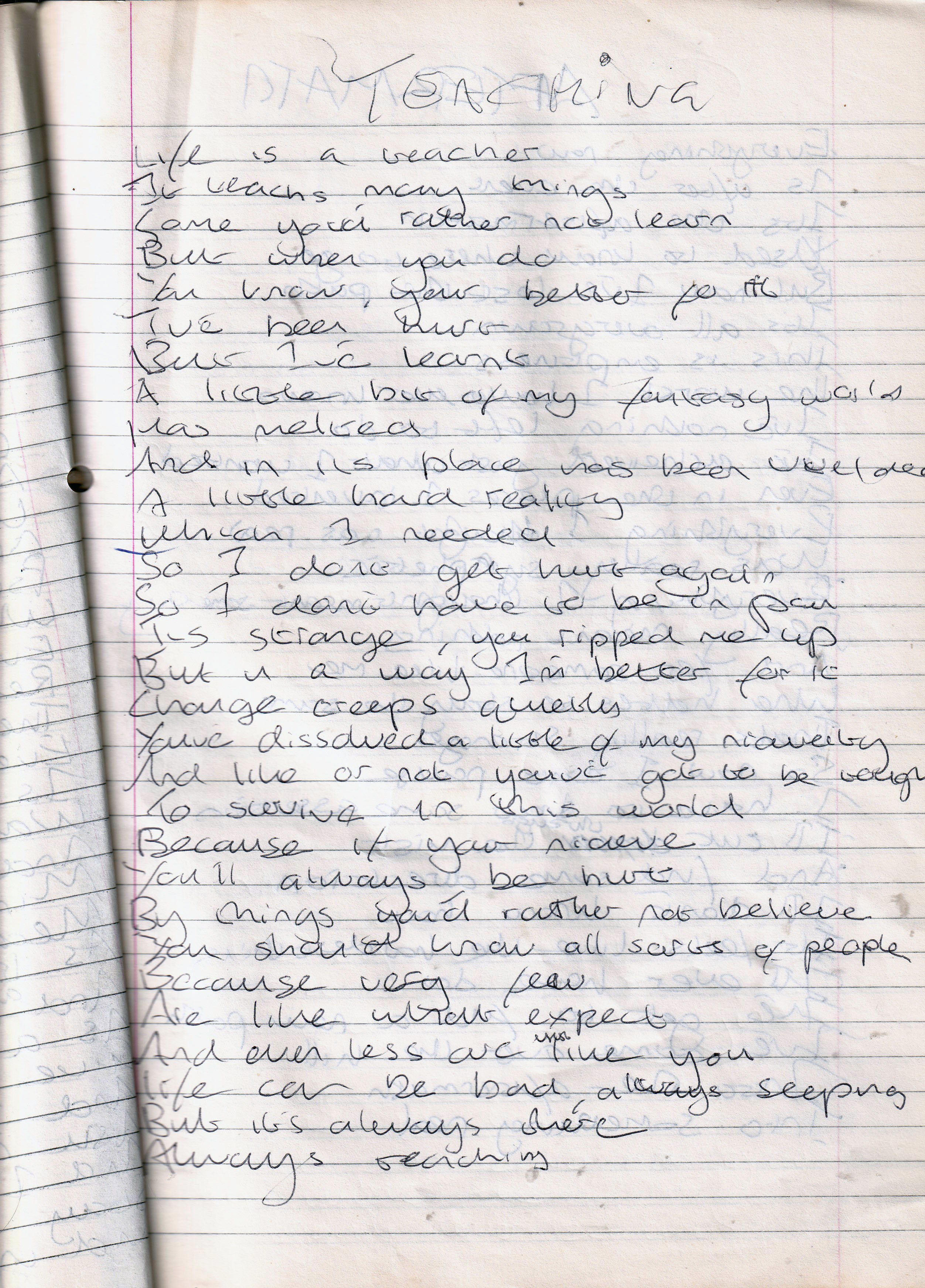 Teaching – Written Tuesday 15th February 1994 and October 1994 (Aged 18/19)