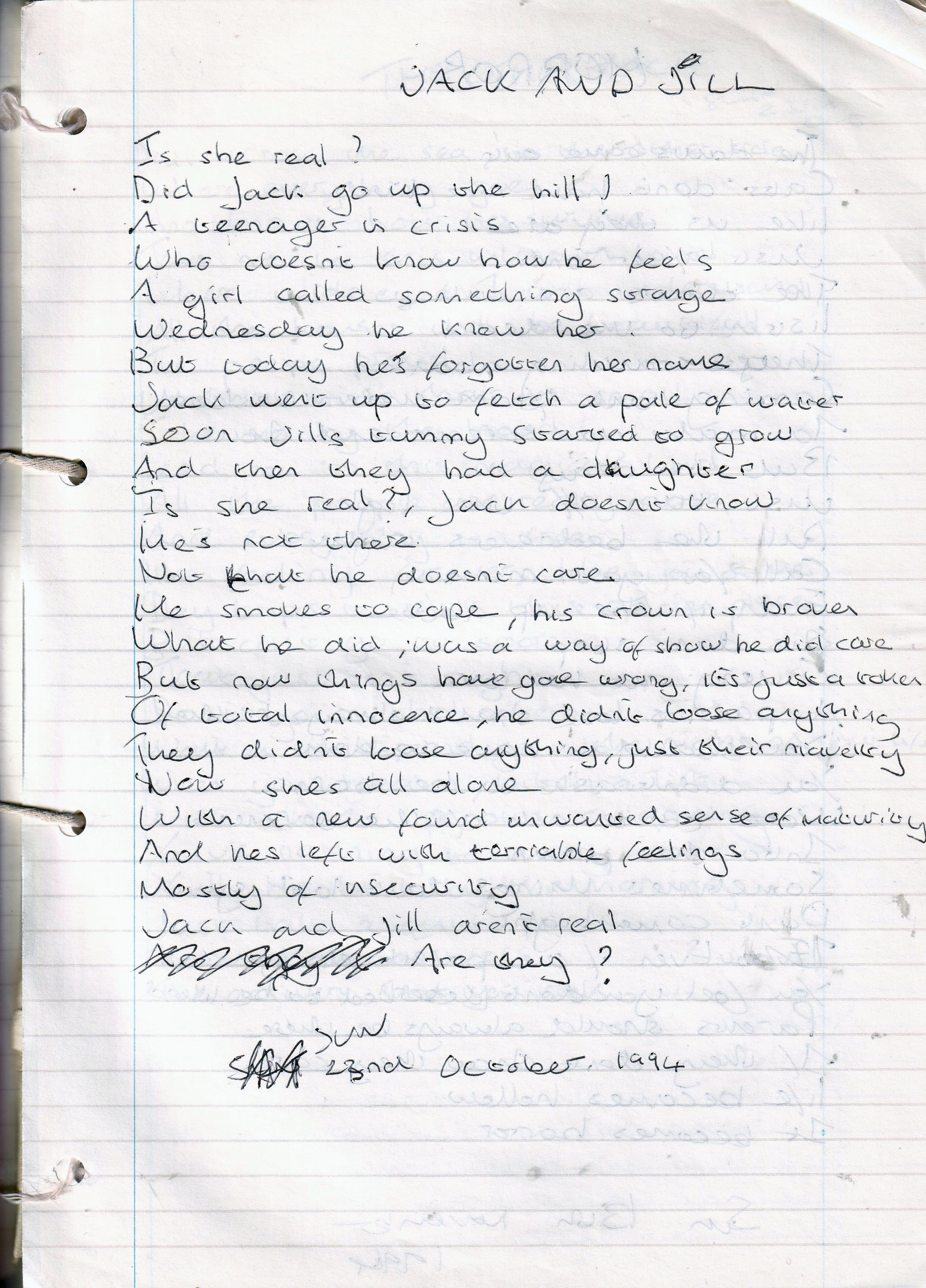 Jack and Jill – Written Sunday 23rd October 1994 (Aged 19)