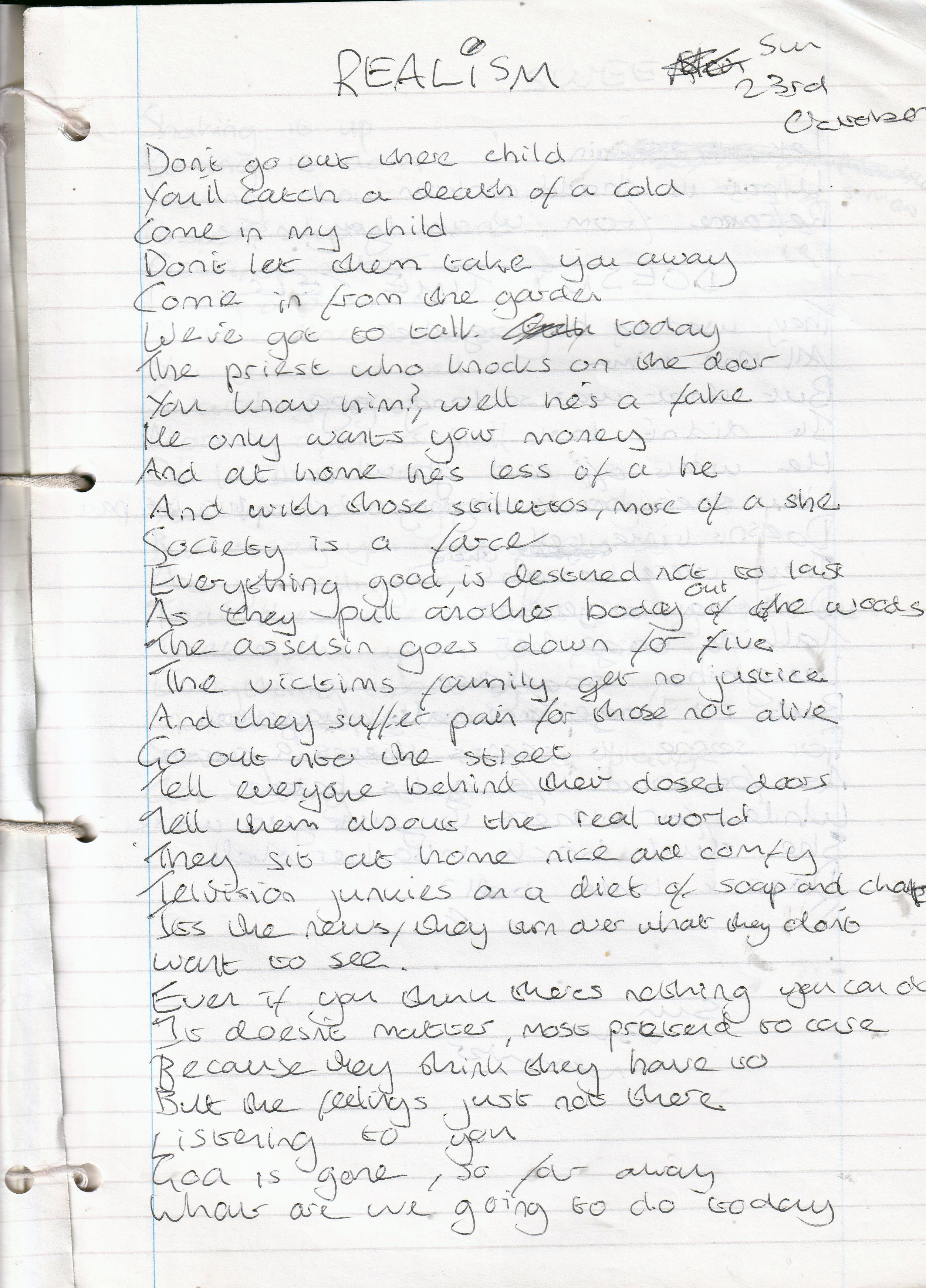 Realism – Written Sunday 23rd October 1994 (Aged 19)