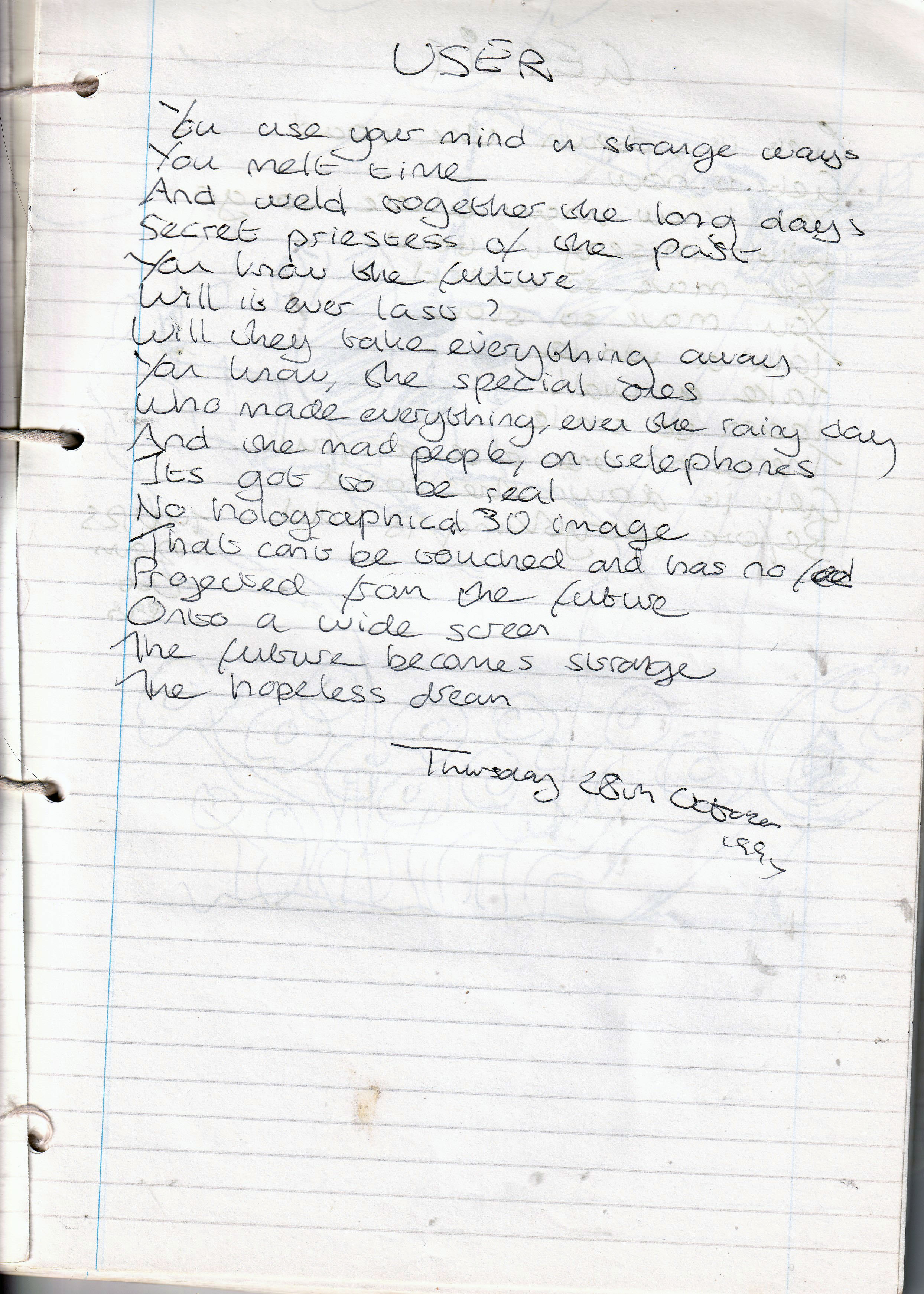 User – Written Thursday 28th October 1994 (Aged 19)