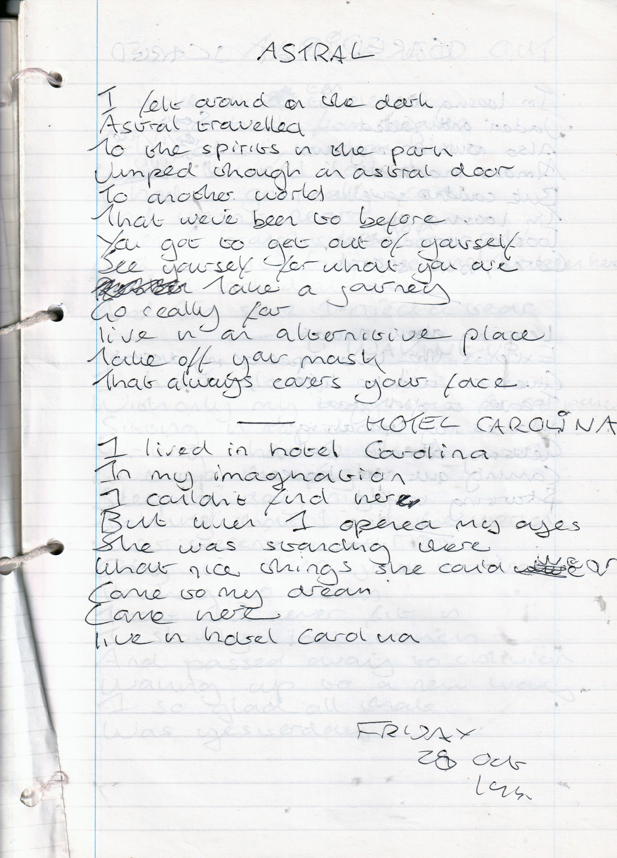Hotel Carolina – Written Friday 28th October 1994 (Aged 19)