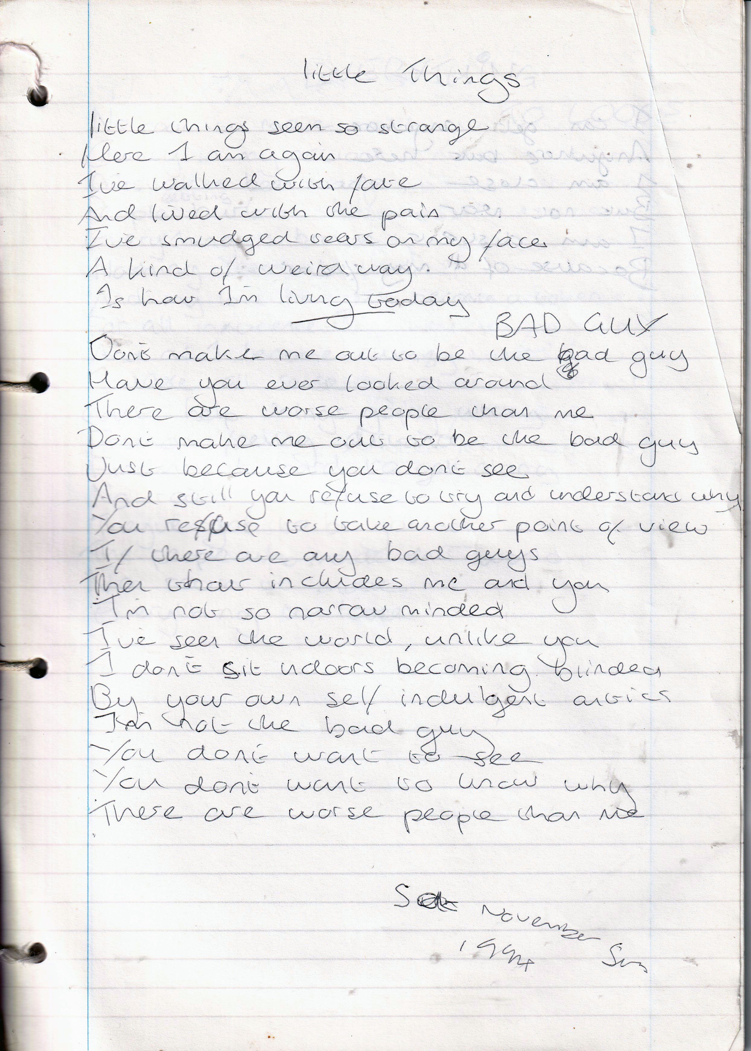 Bad Guy – Written Saturday 5th November 1994 (Aged 19)