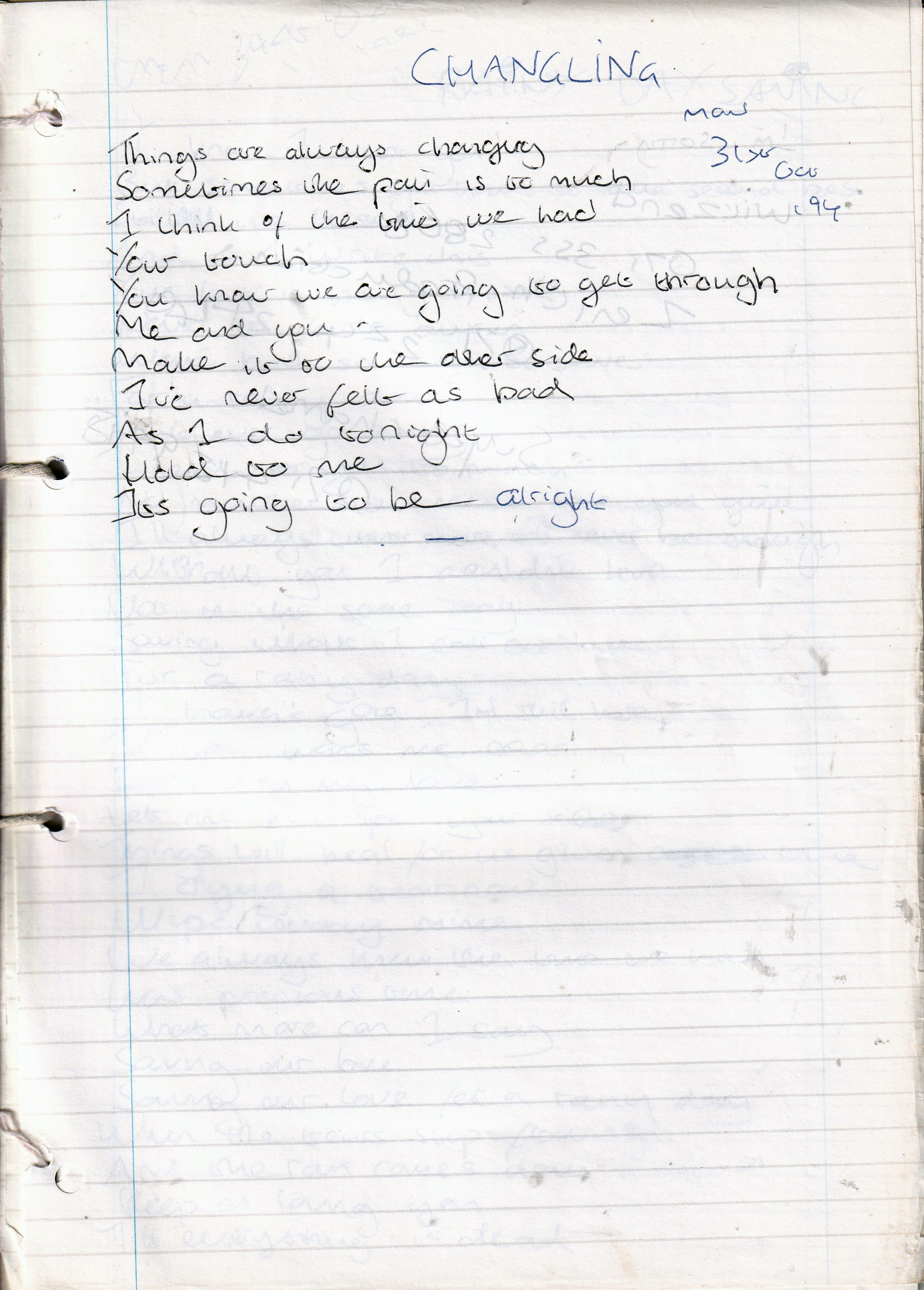 Changeling – Written Monday 31st October 1994 (Aged 19)