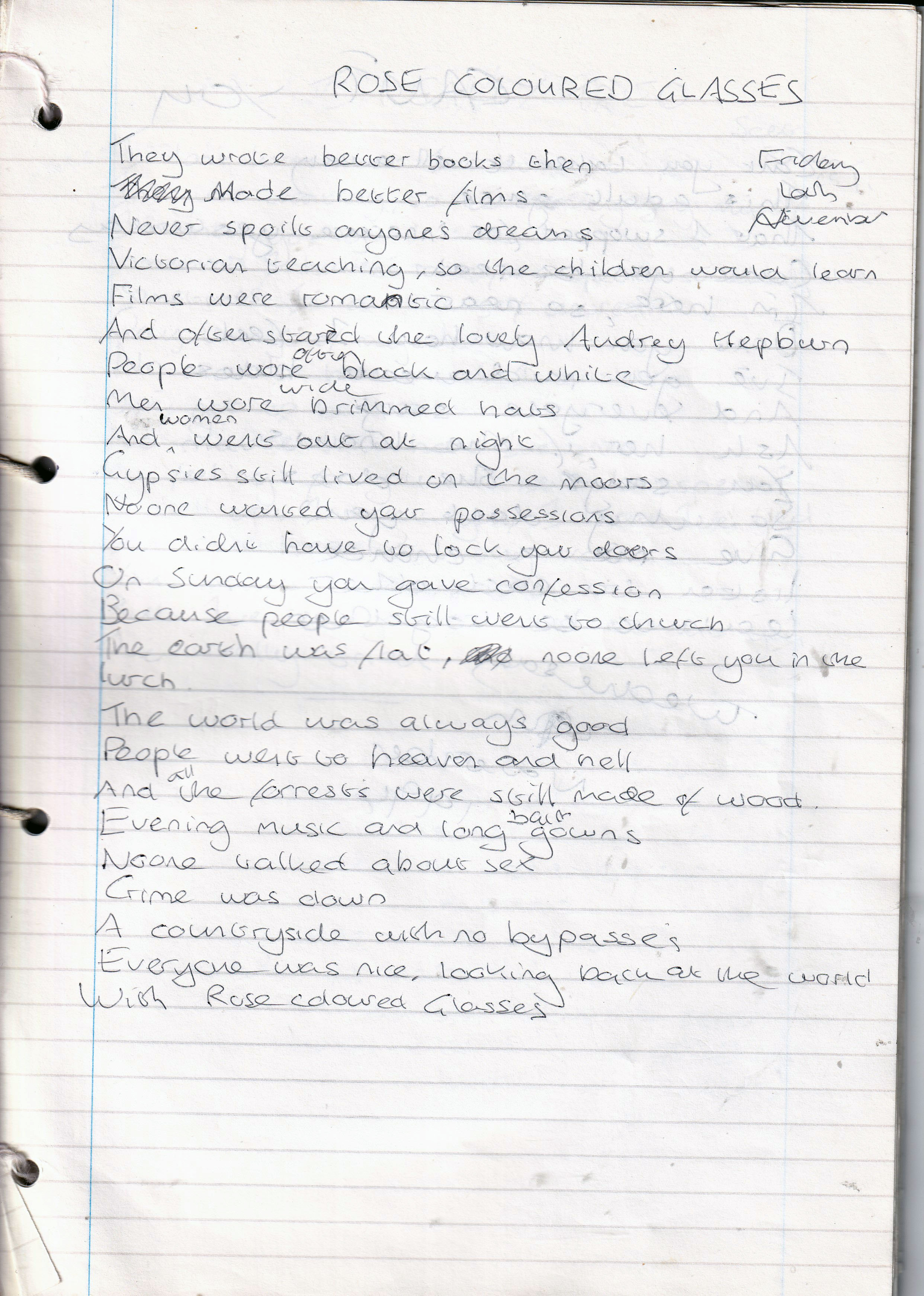 Rose Coloured Glasses – Written Friday 4th November 1994 (Aged 19)