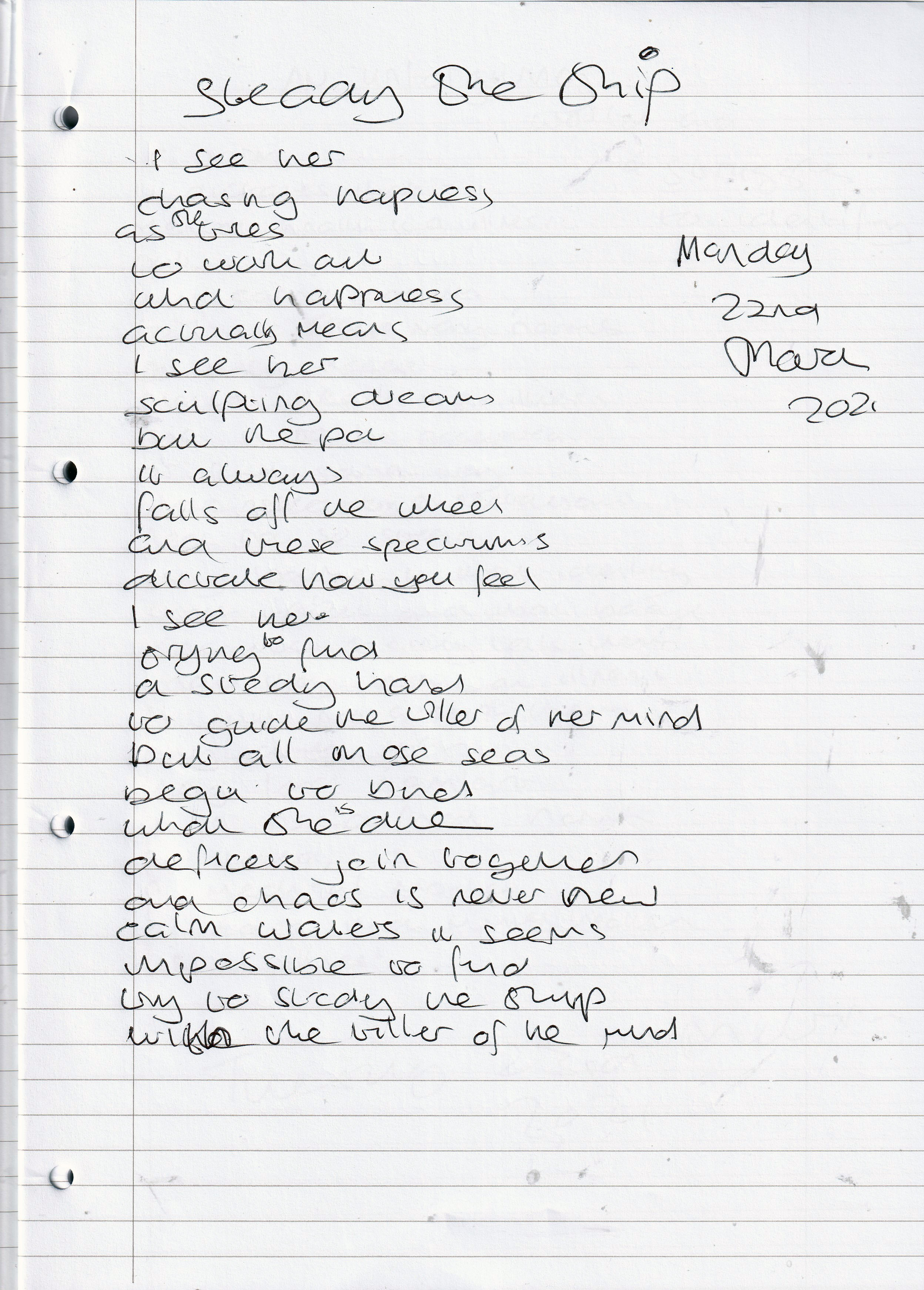 Steady The Ship – Written Monday 22nd March 2021 (Aged 46)