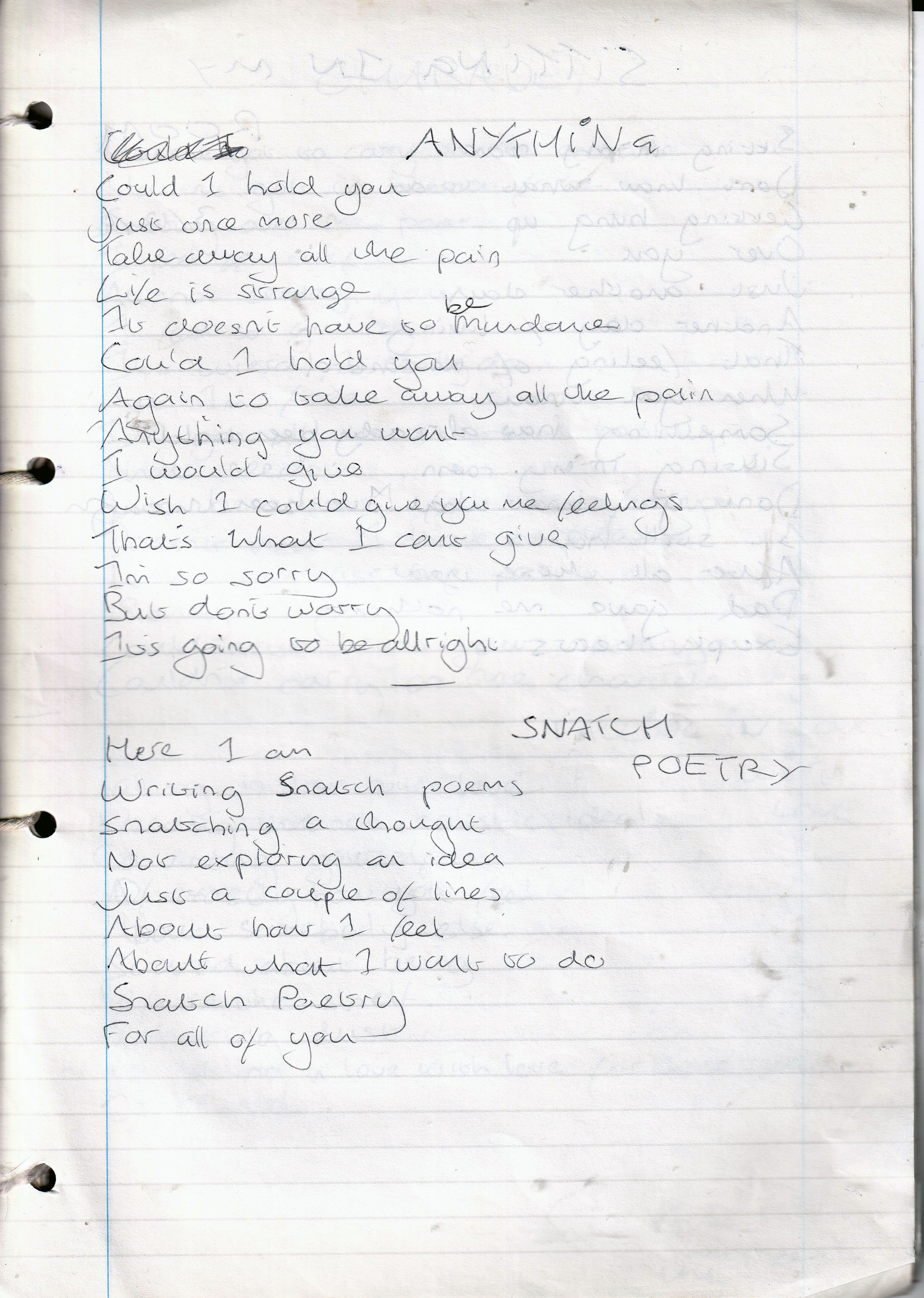 Snatch Poetry – Written Sunday 6th November 1994 (Aged 19)