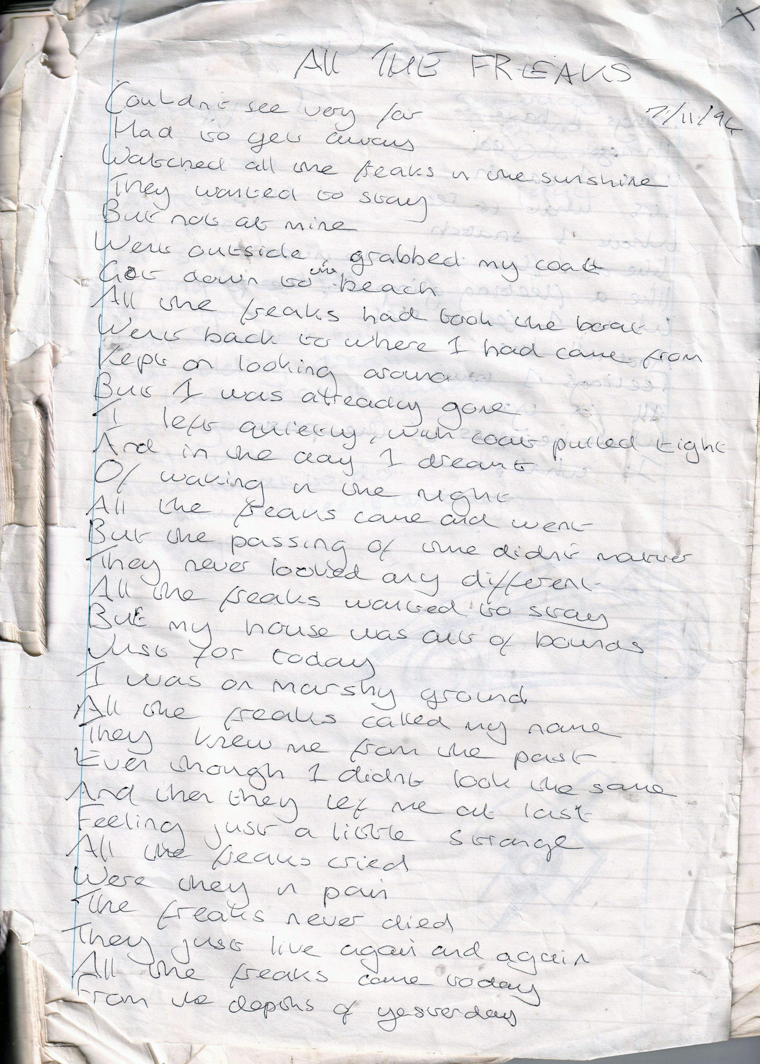 All The Freaks – Written Monday 7th November 1994 (Aged 19)