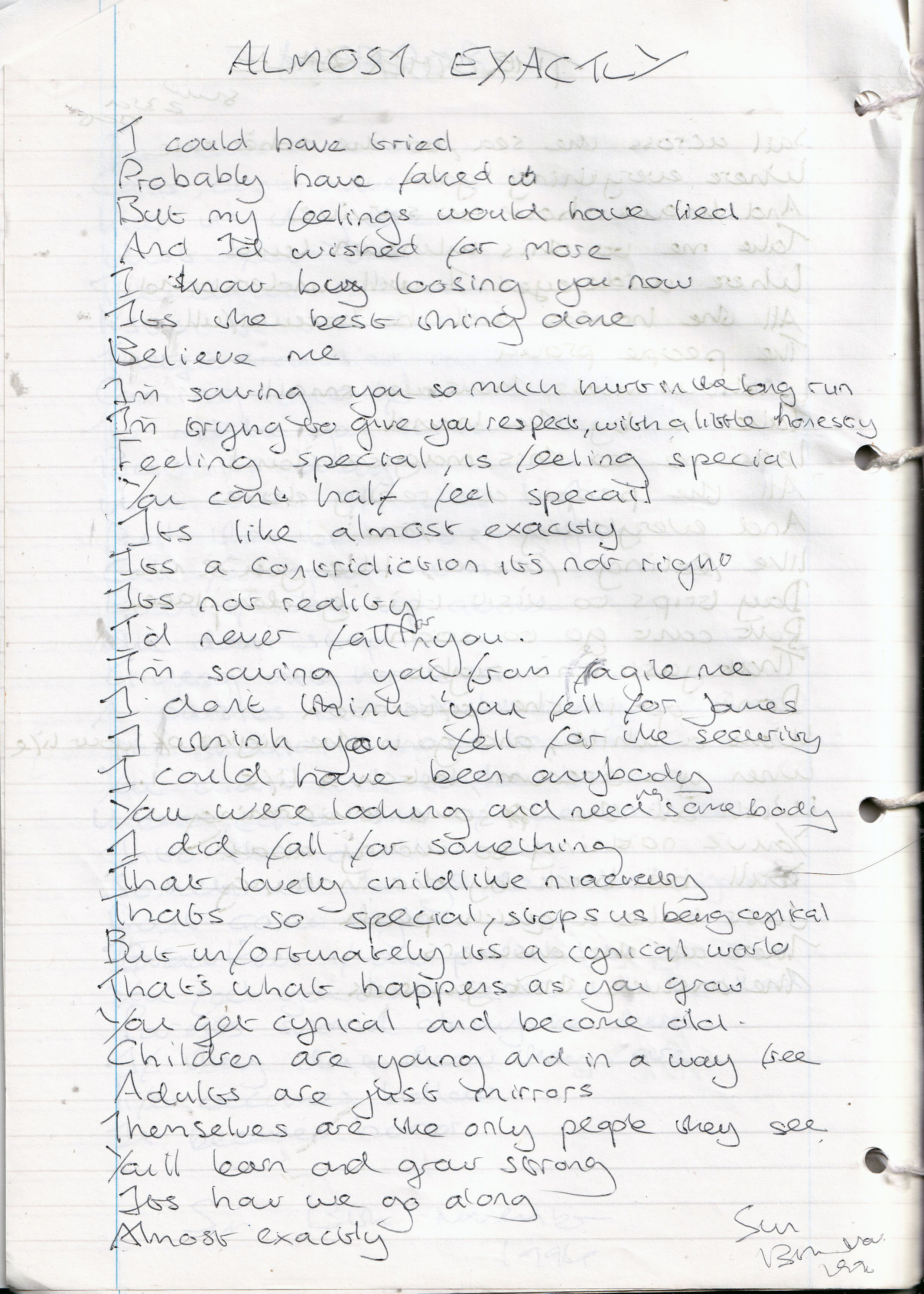 Almost Exactly – Written Sunday 13th November 1994 (Aged 19)