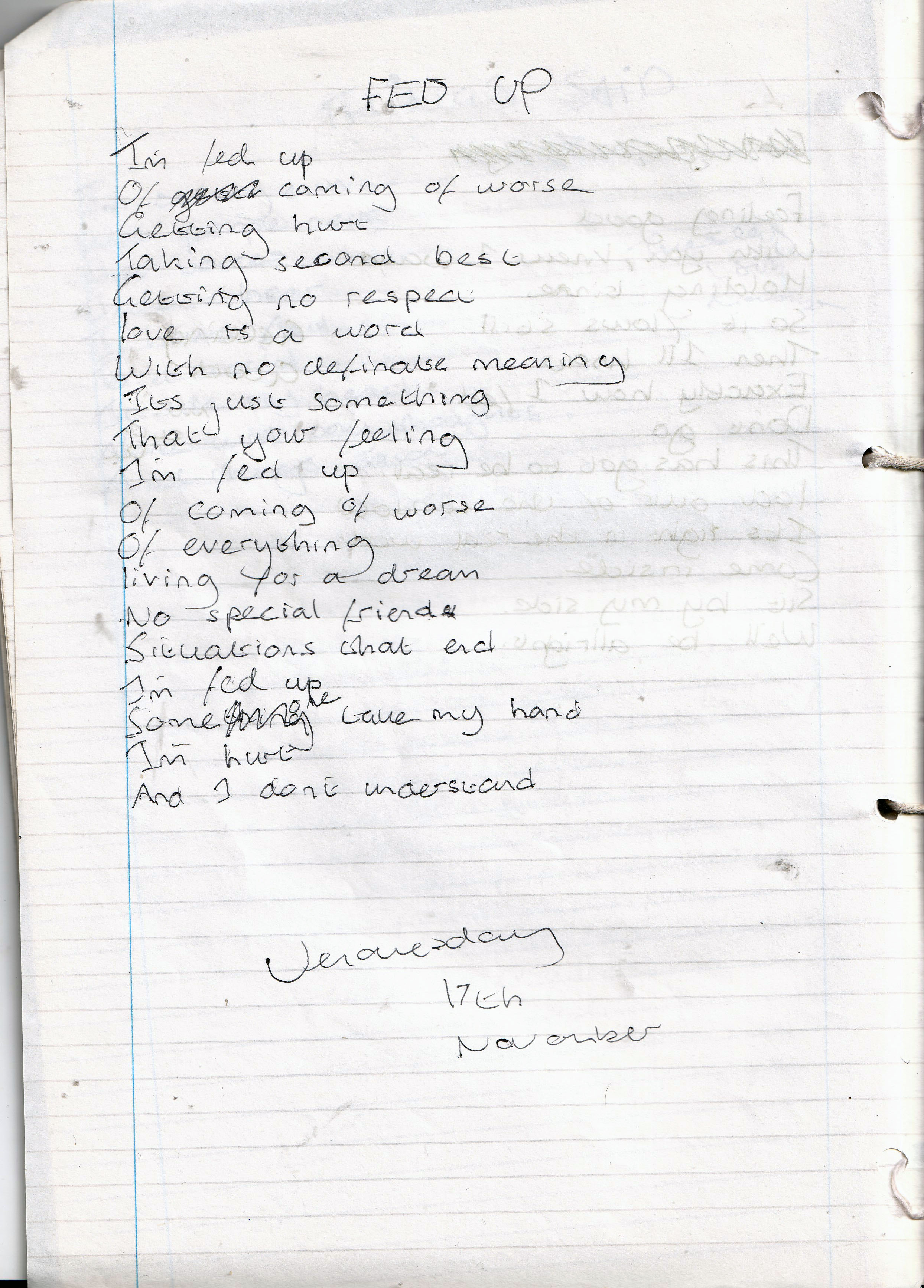 Fed Up – Written Wednesday 16th November 1994 (Aged 19)