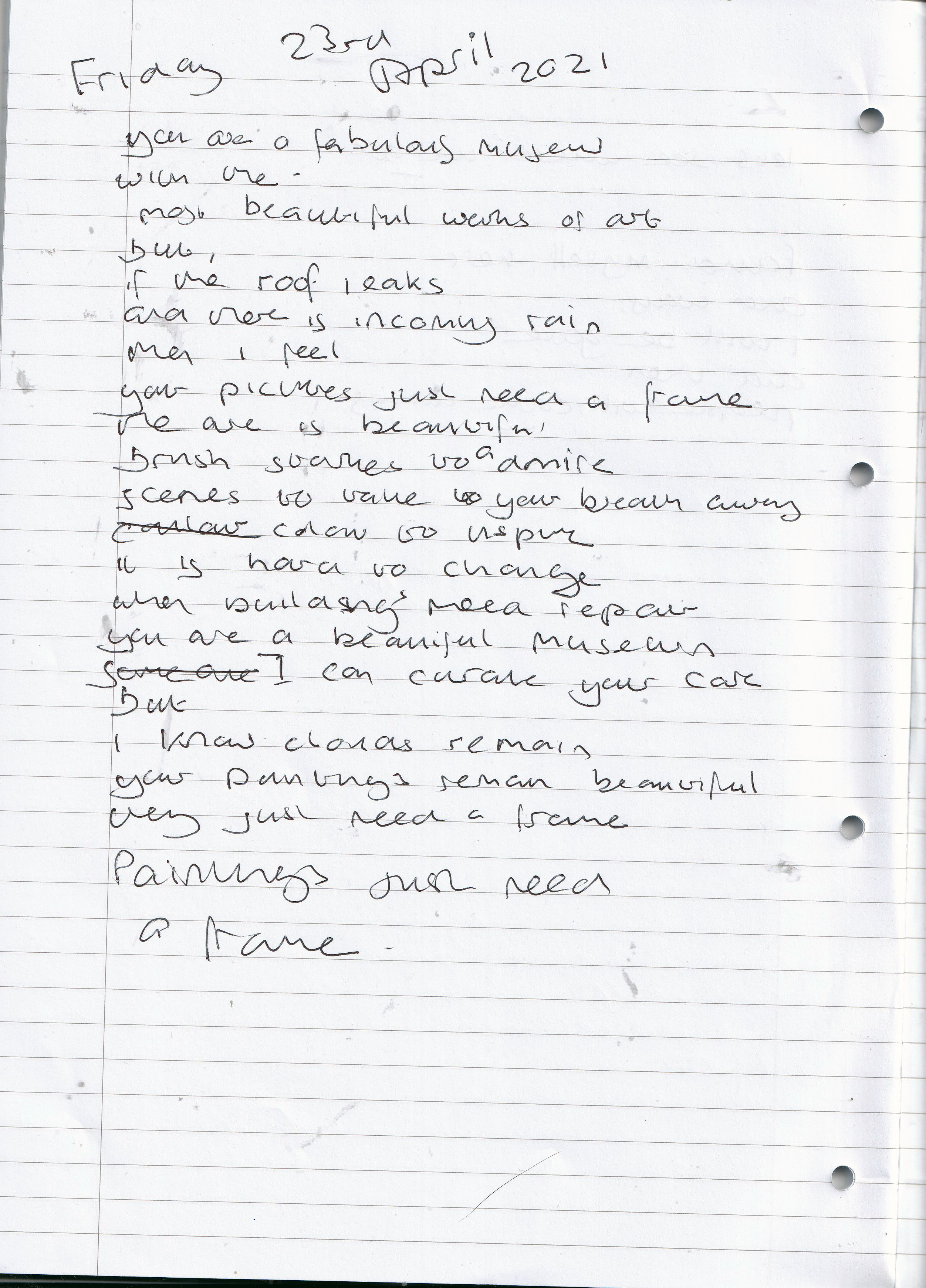 Paintings Just Need a Frame – Written Friday 23rd April 2021 (Aged 46)