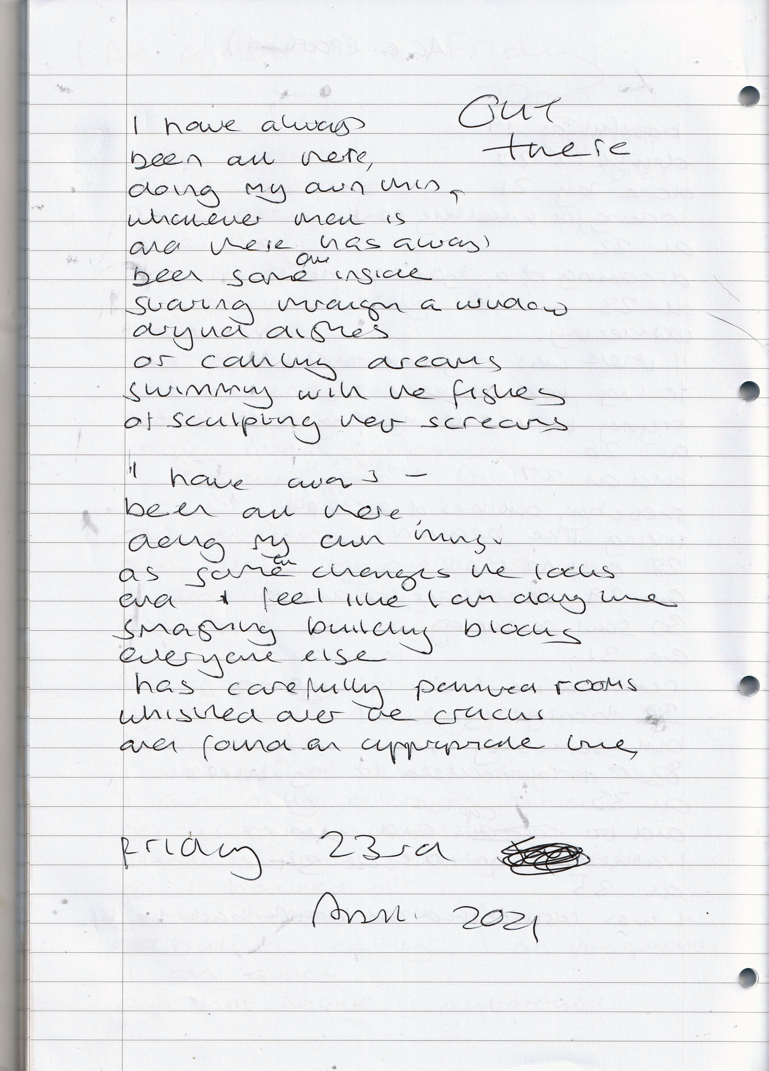 Out There – Written Friday 23rd April 2021 (Aged 46)
