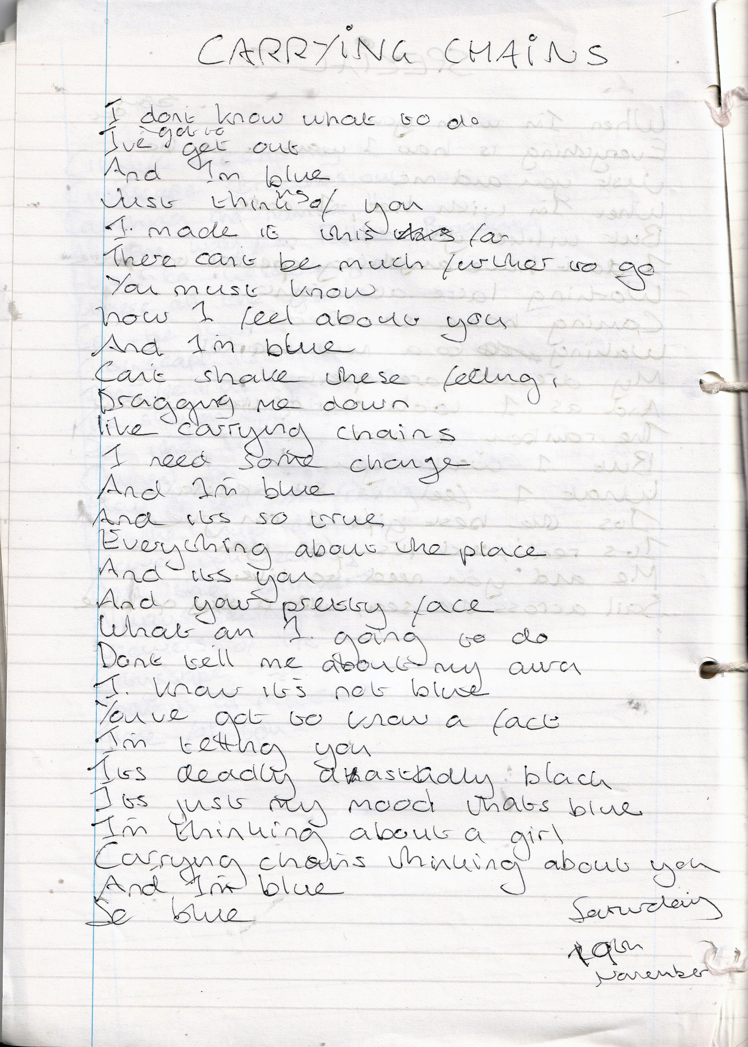 Carrying Chains – Written Saturday 19th November 1994 (Aged 19)