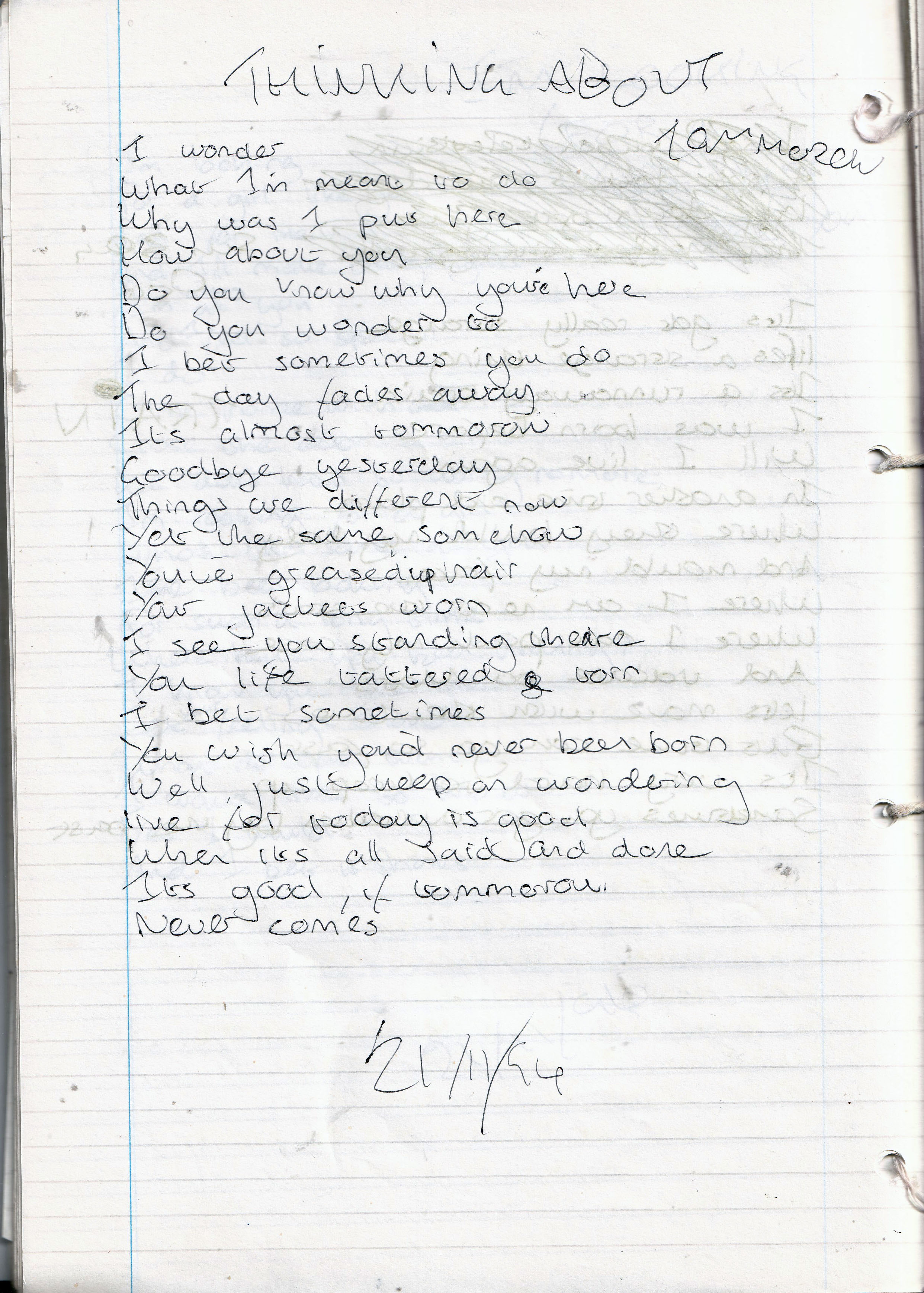 Thinking About Tomorrow – Written Monday 21st November 1994 (Aged 19)