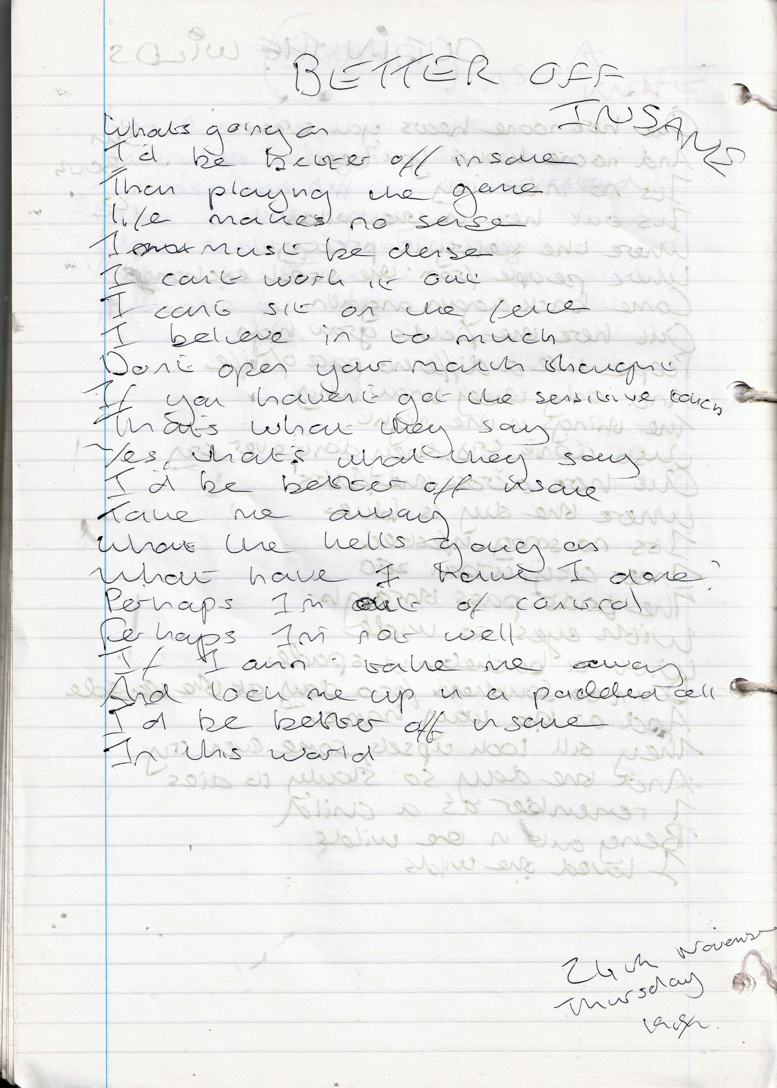 Better Off Insane – Written Thursday 24th November 1994 (Aged 19)