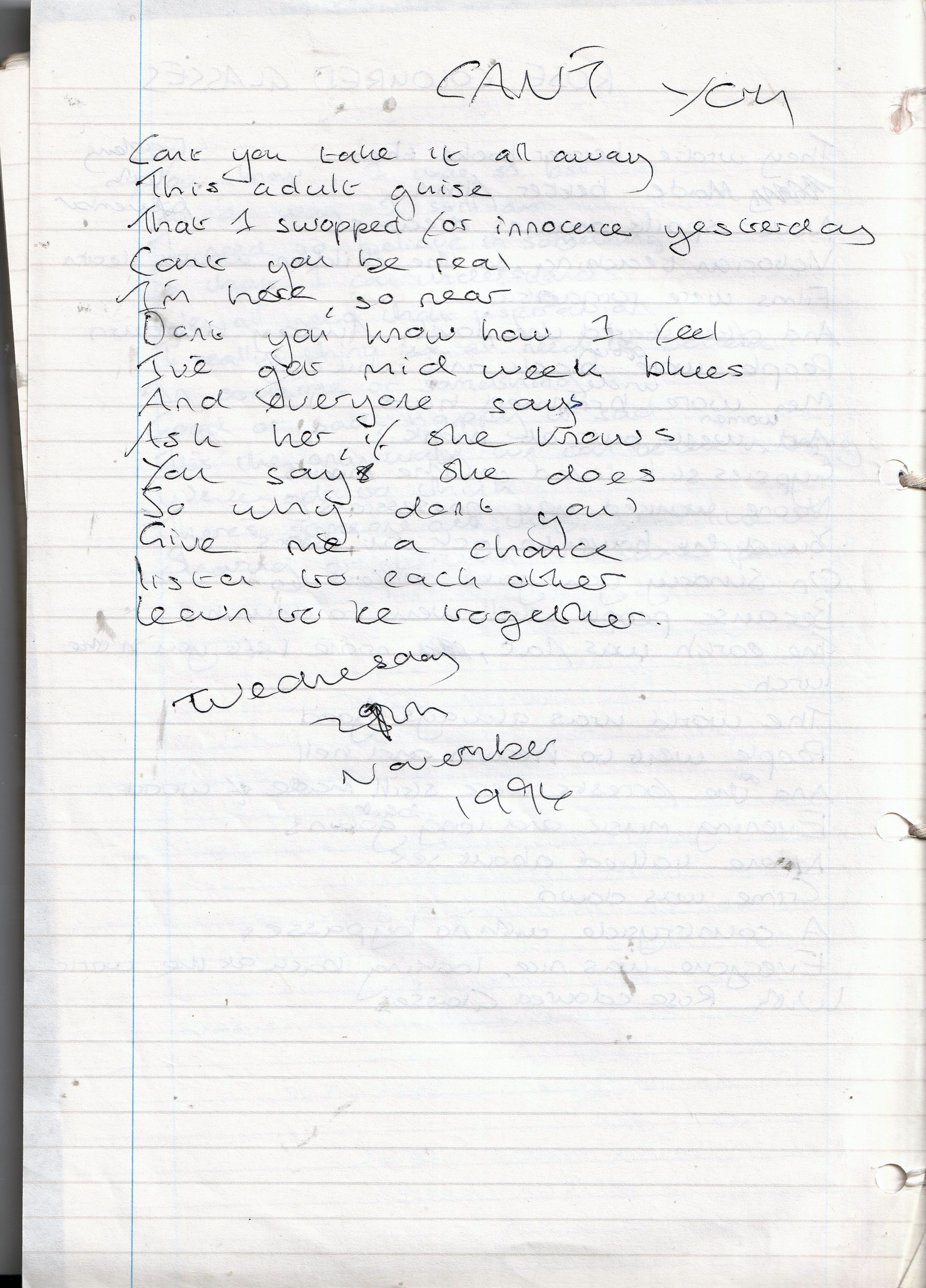 Can’t You – Written Tuesday 29th November 1994 (Aged 19)