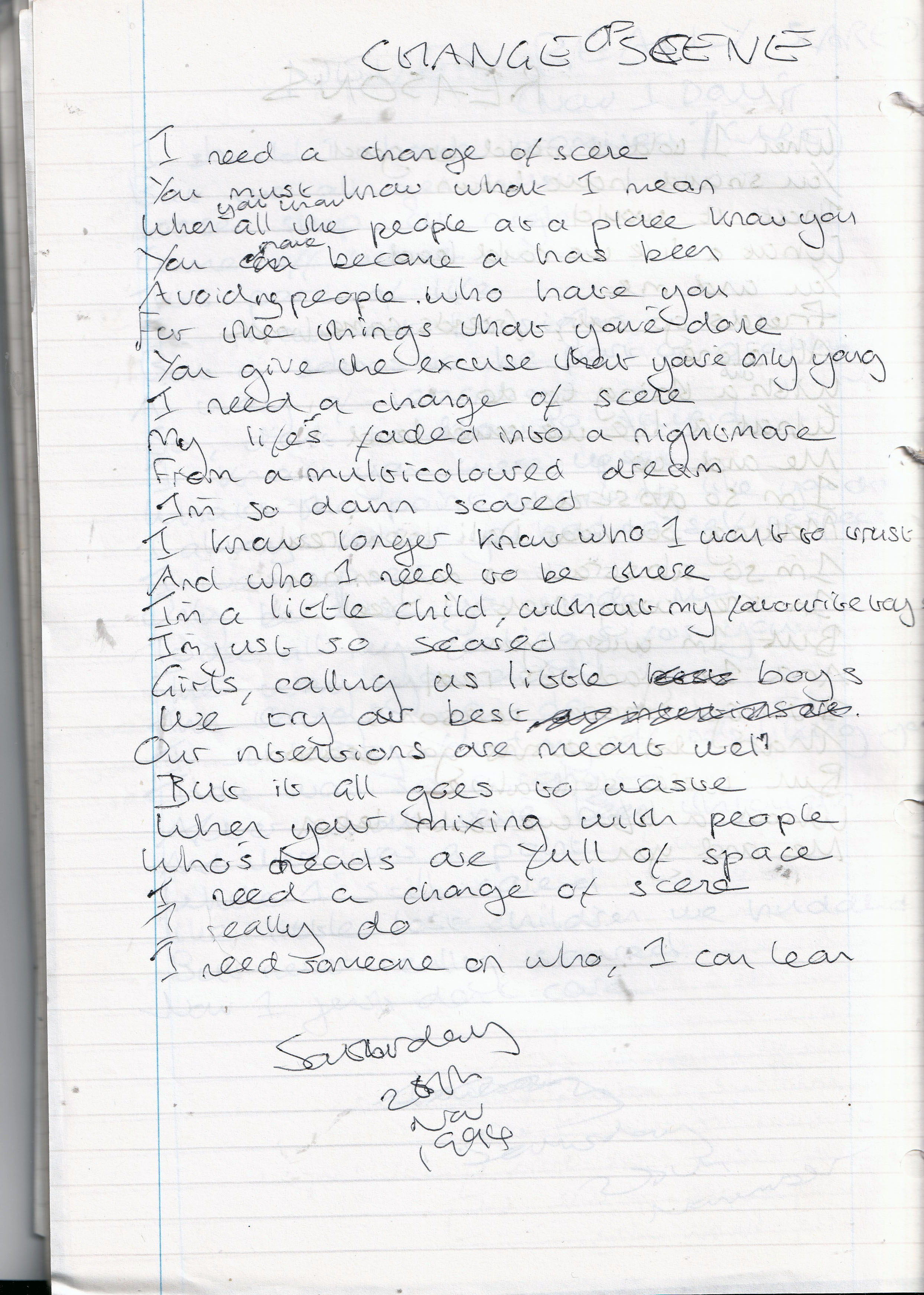 Change of Scene – Written Saturday 26th November 1994 (Aged 19)