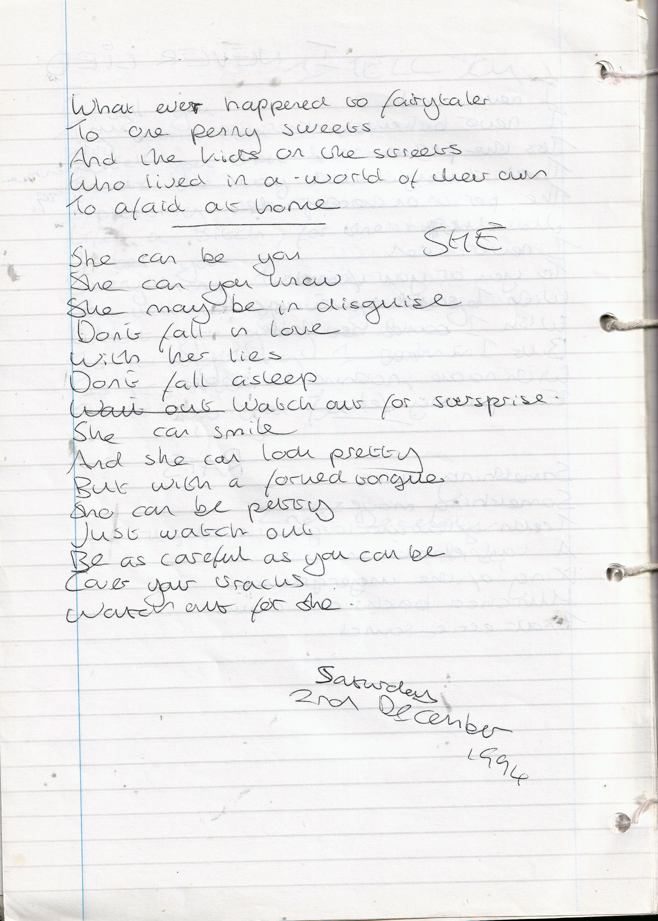 She – Written Saturday 3rd December 1994 (Aged 19)
