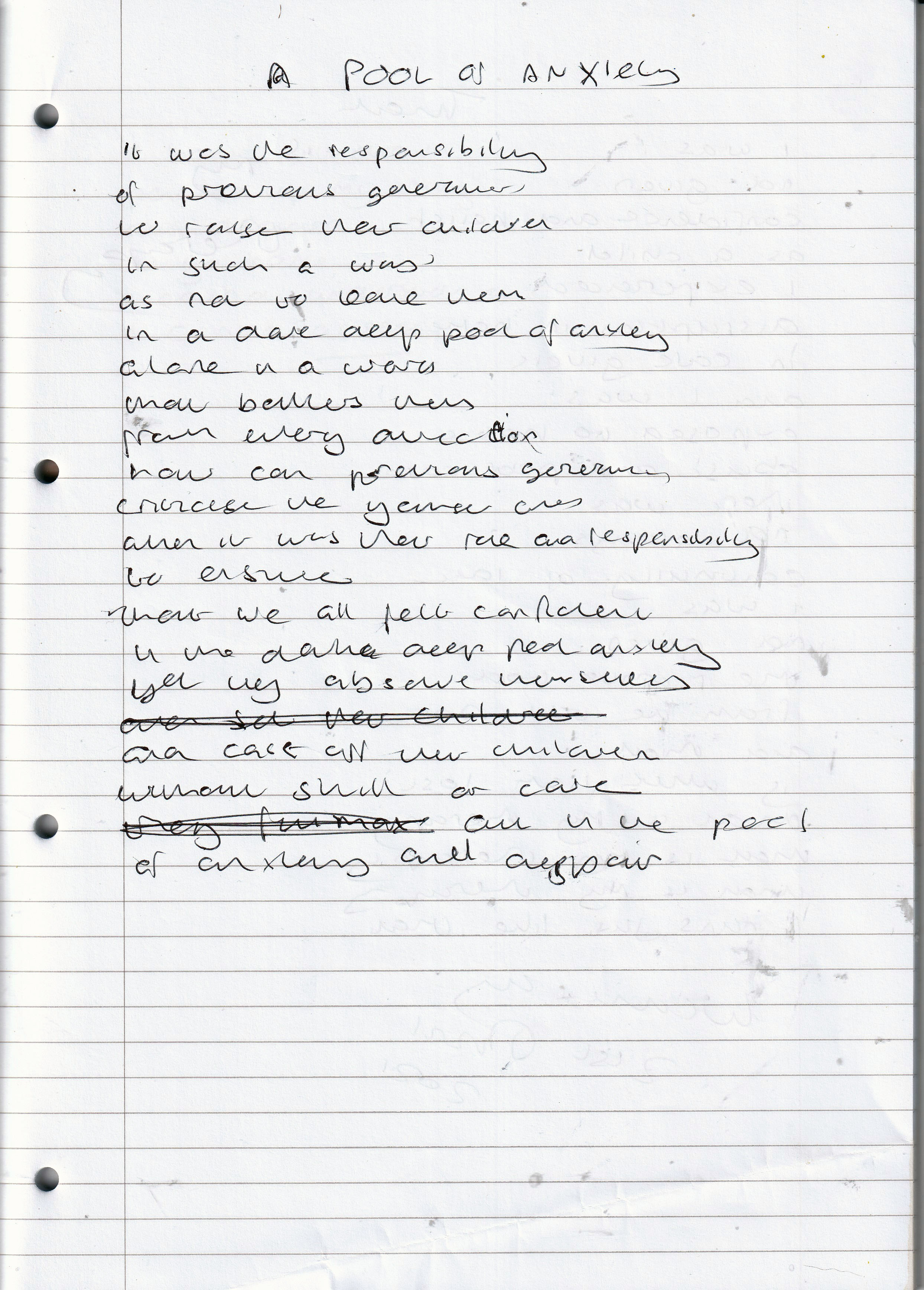 A Pool of Anxiety – Written April 2021 (Aged 46)