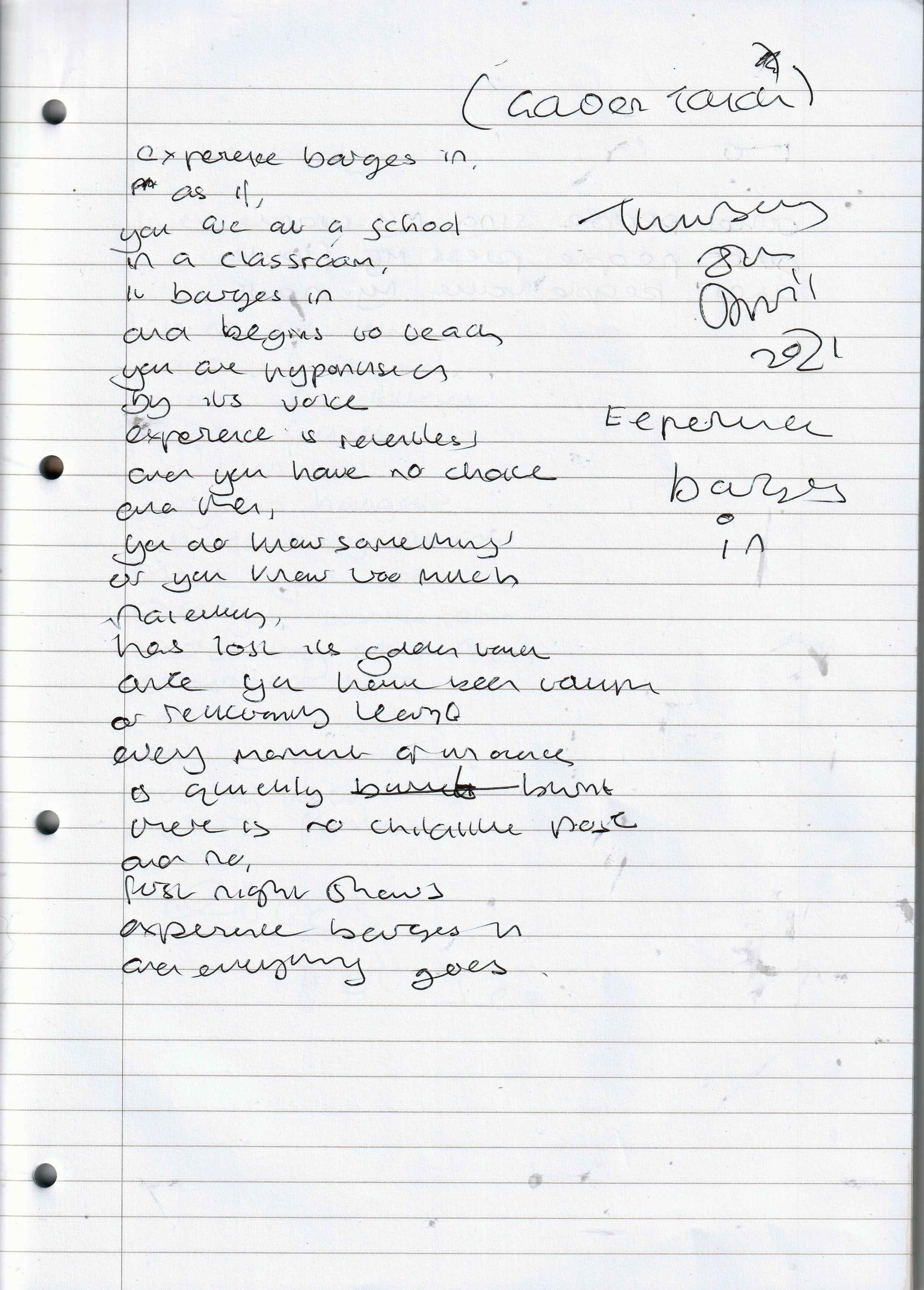Experience Barges In – Written Thursday 8th April 2021 (Aged 46)
