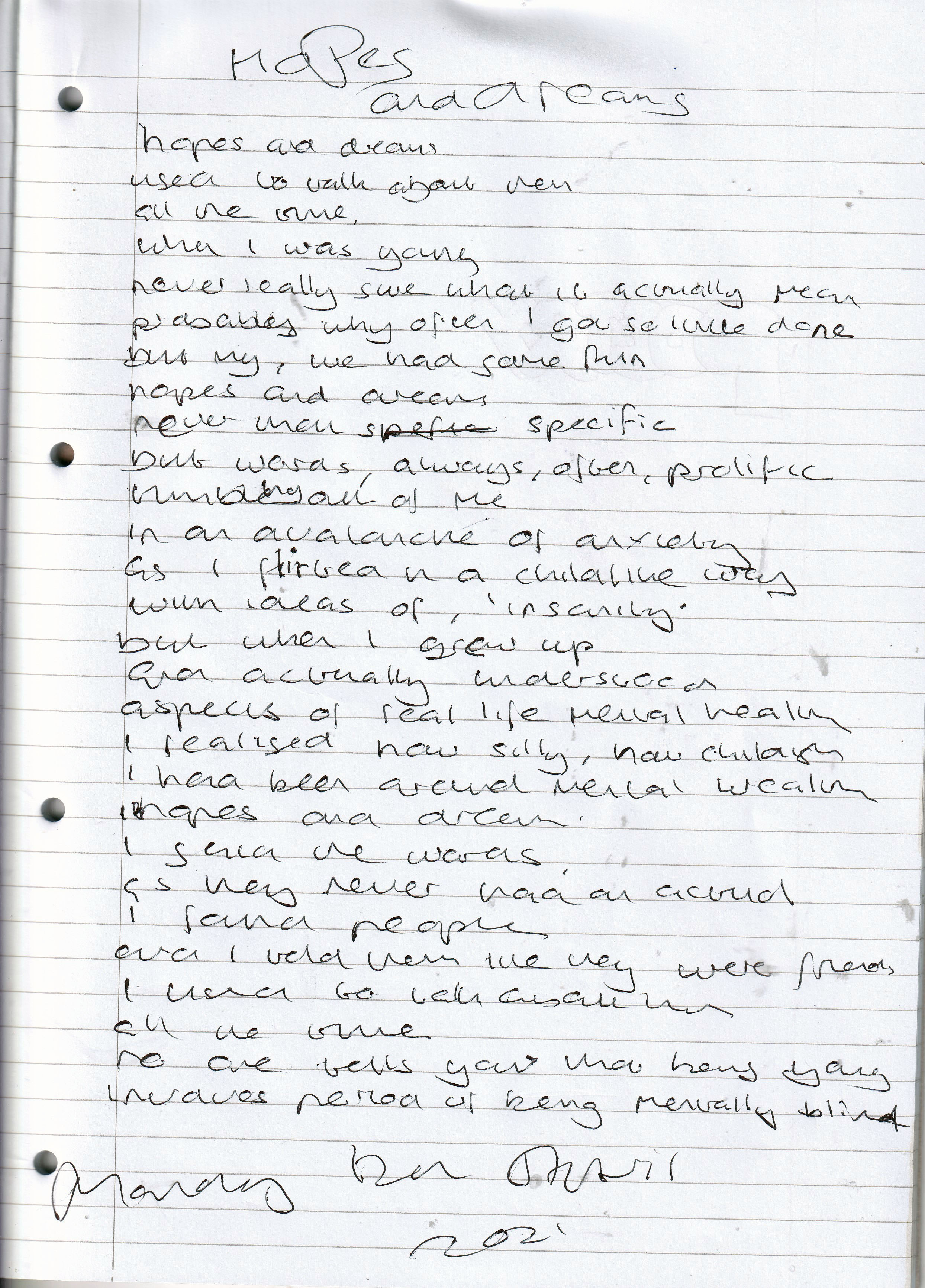 Hopes and Dreams – Written Monday 12th April 2021 (Aged 46)
