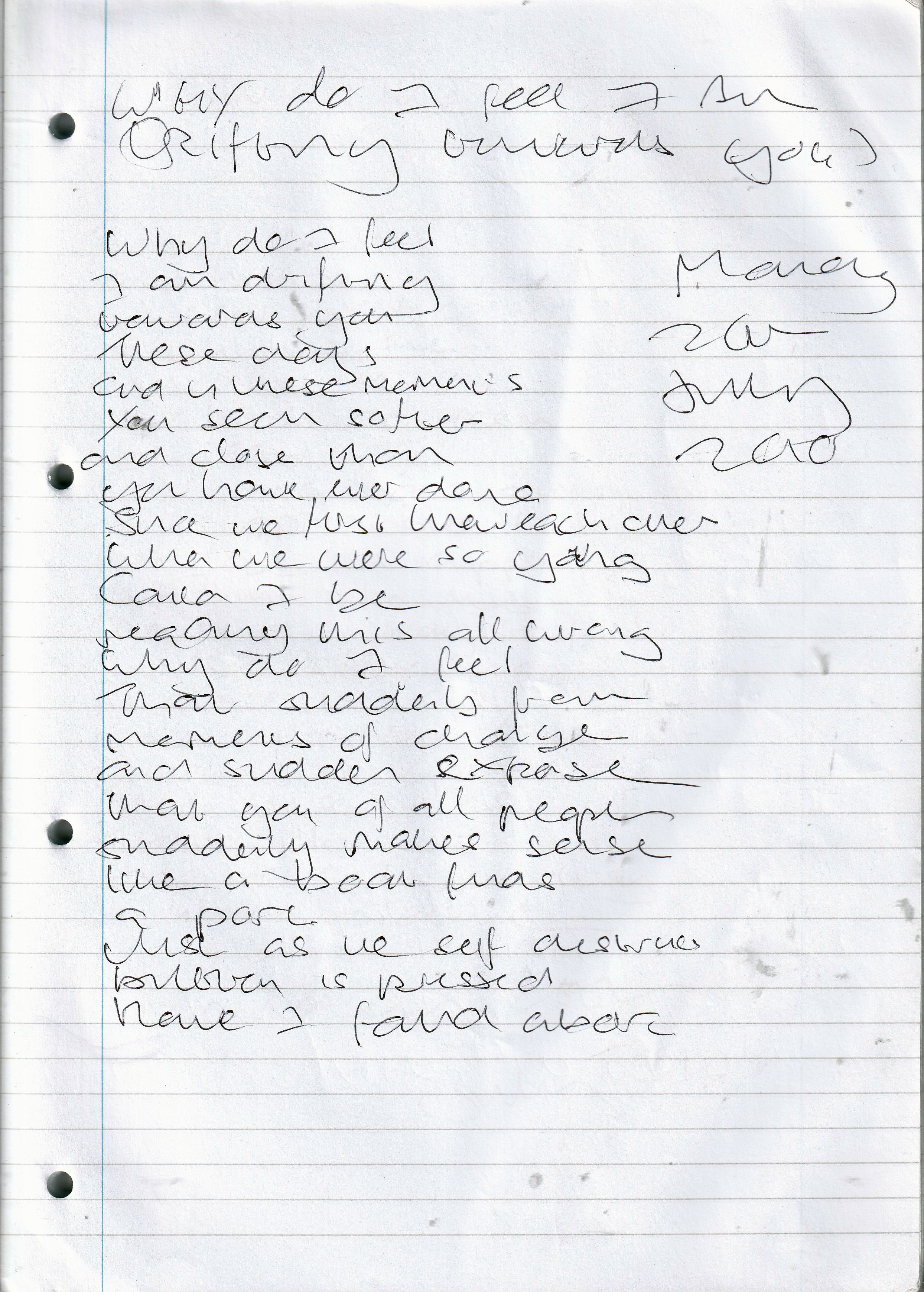 Why Do I Feel I Am Drifting Towards You? – Written Monday 26th July 2010 (Aged 35)