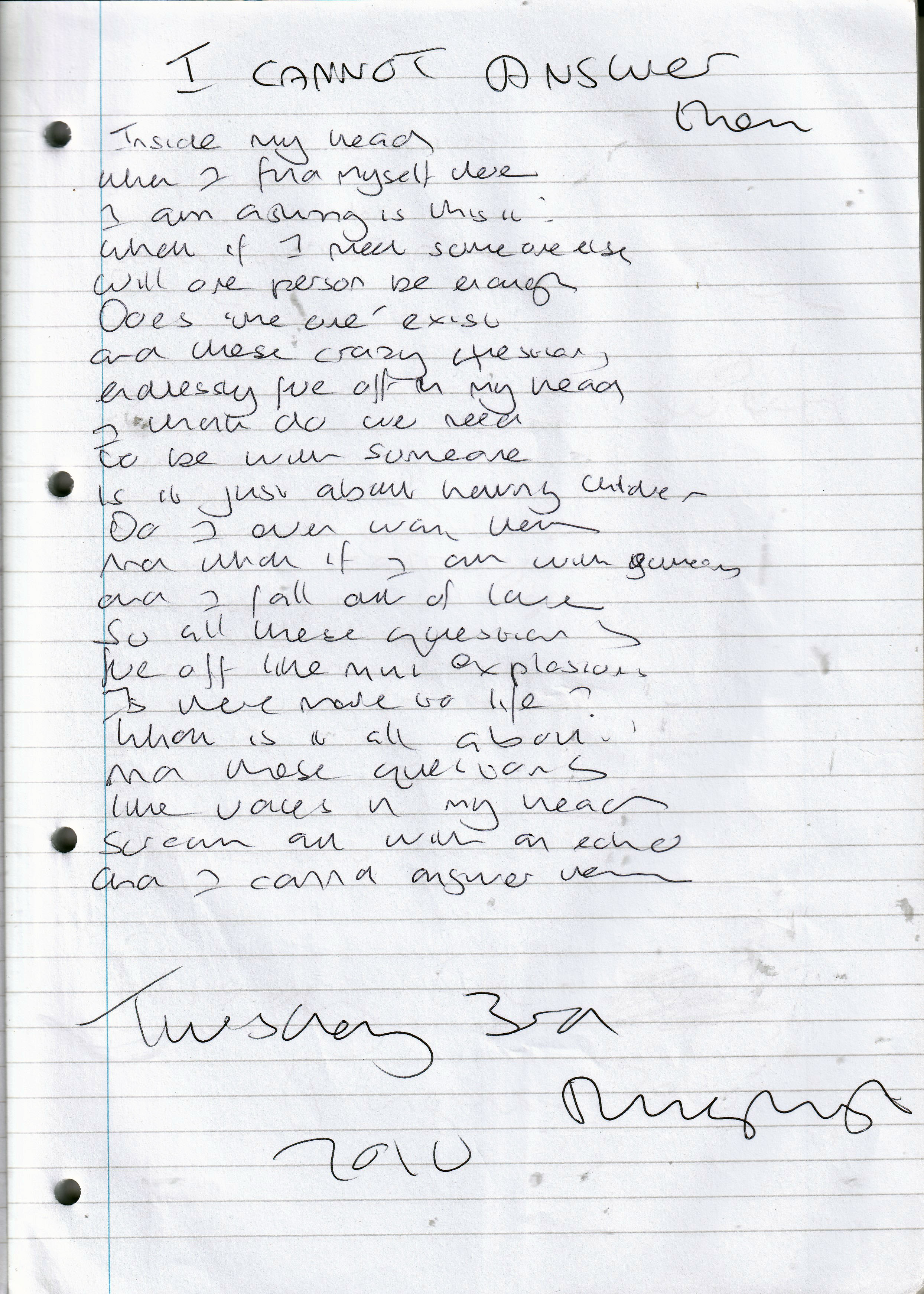 I Cannot Answer Them – Written Tuesday 3rd August 2010 (Aged 35)