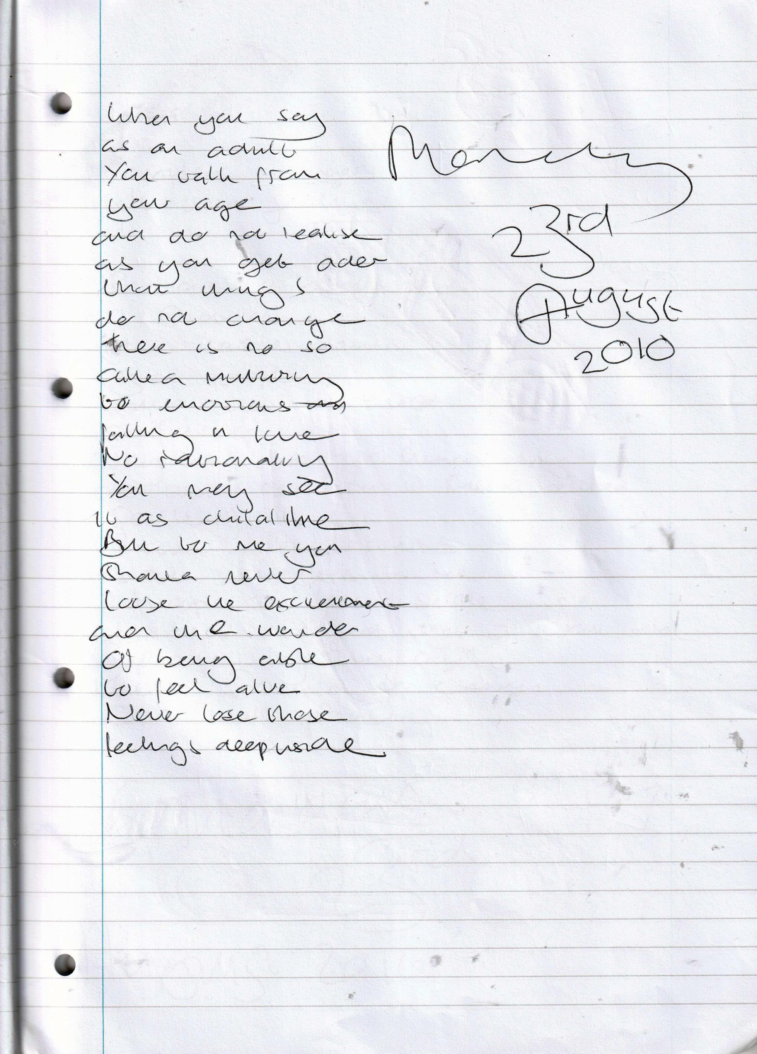 Feel Alive – Written Monday 23rd August 2010 (Aged 35)