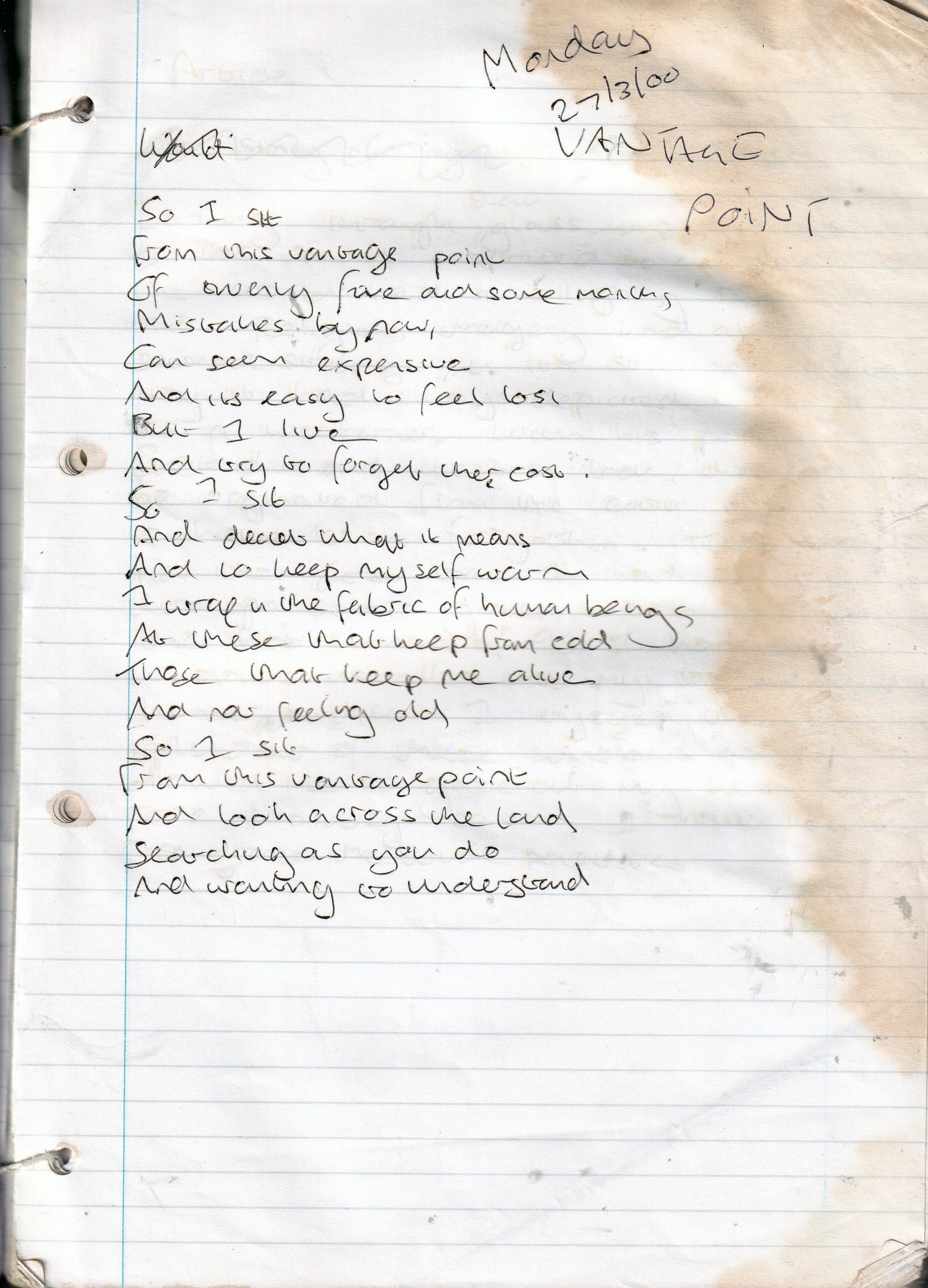 Vantage Point – Written Monday 27th March 2000 (aged 25)