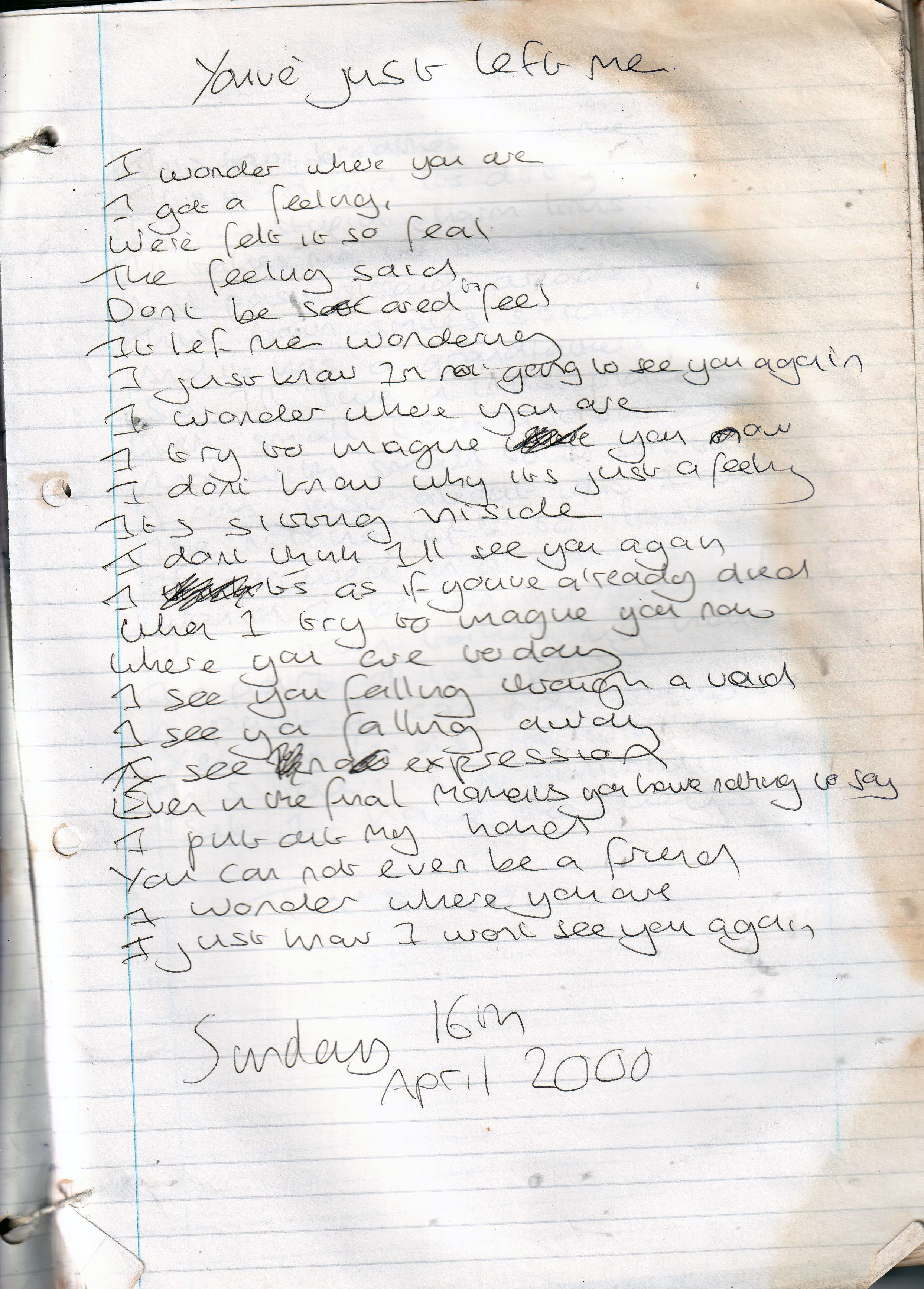 You Have Just Left Me – Written Sunday 16th April 2000 (Aged 25)