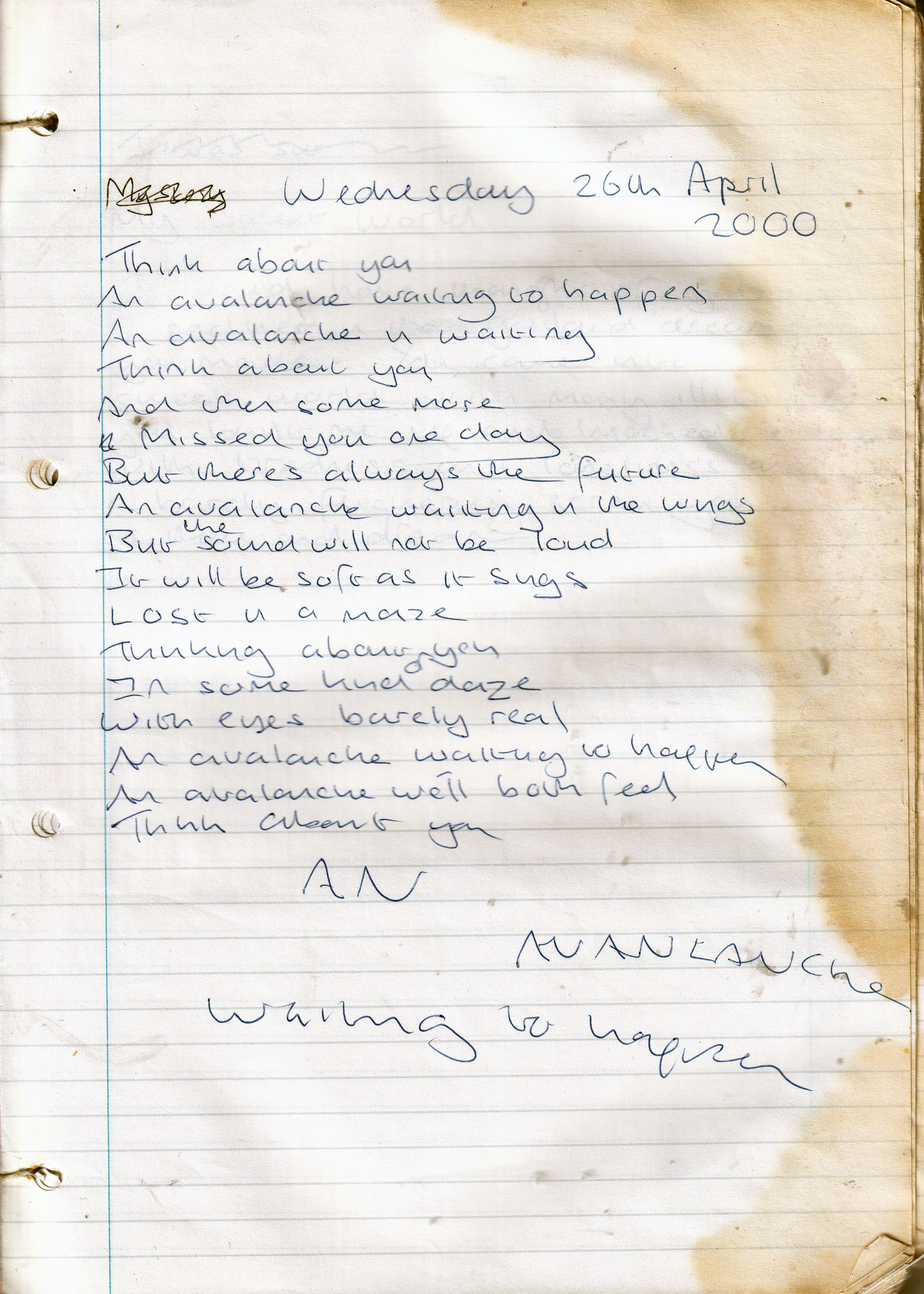 An Avalanche Waiting to Happen – Written Wednesday 26th April 2000 (Aged 25)