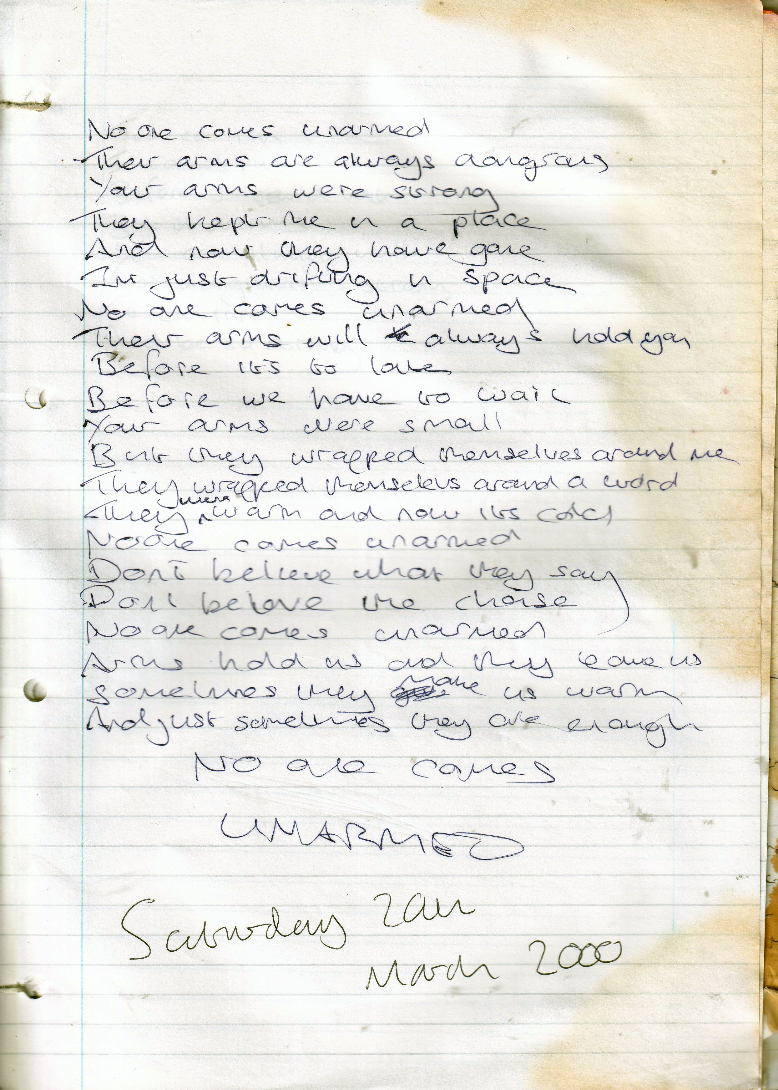 No One Comes Unarmed – Written Saturday 20th May 2000 (Aged 25)