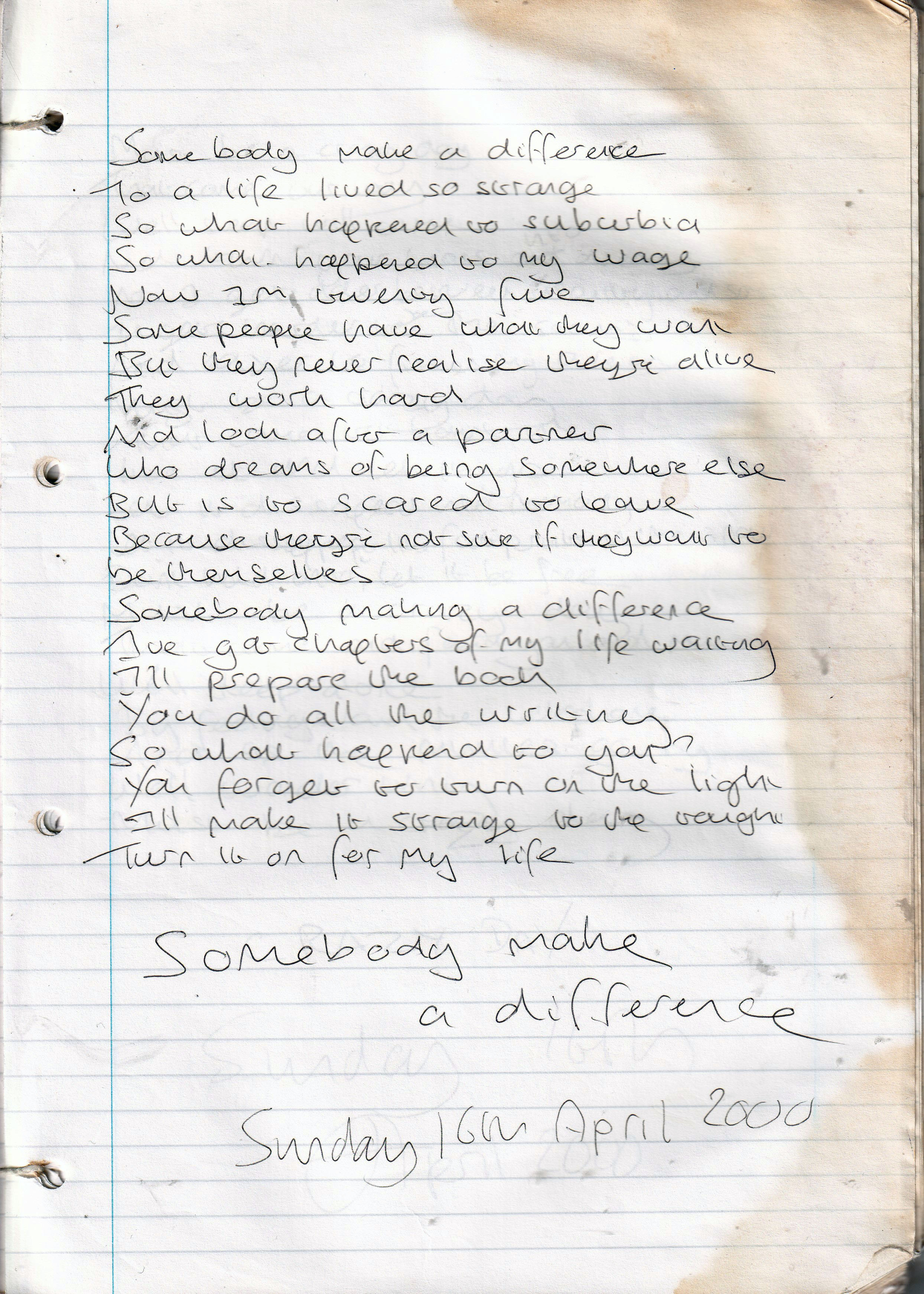 Somebody Make a Difference – Written Sunday 16th April 2000 (Aged 25)
