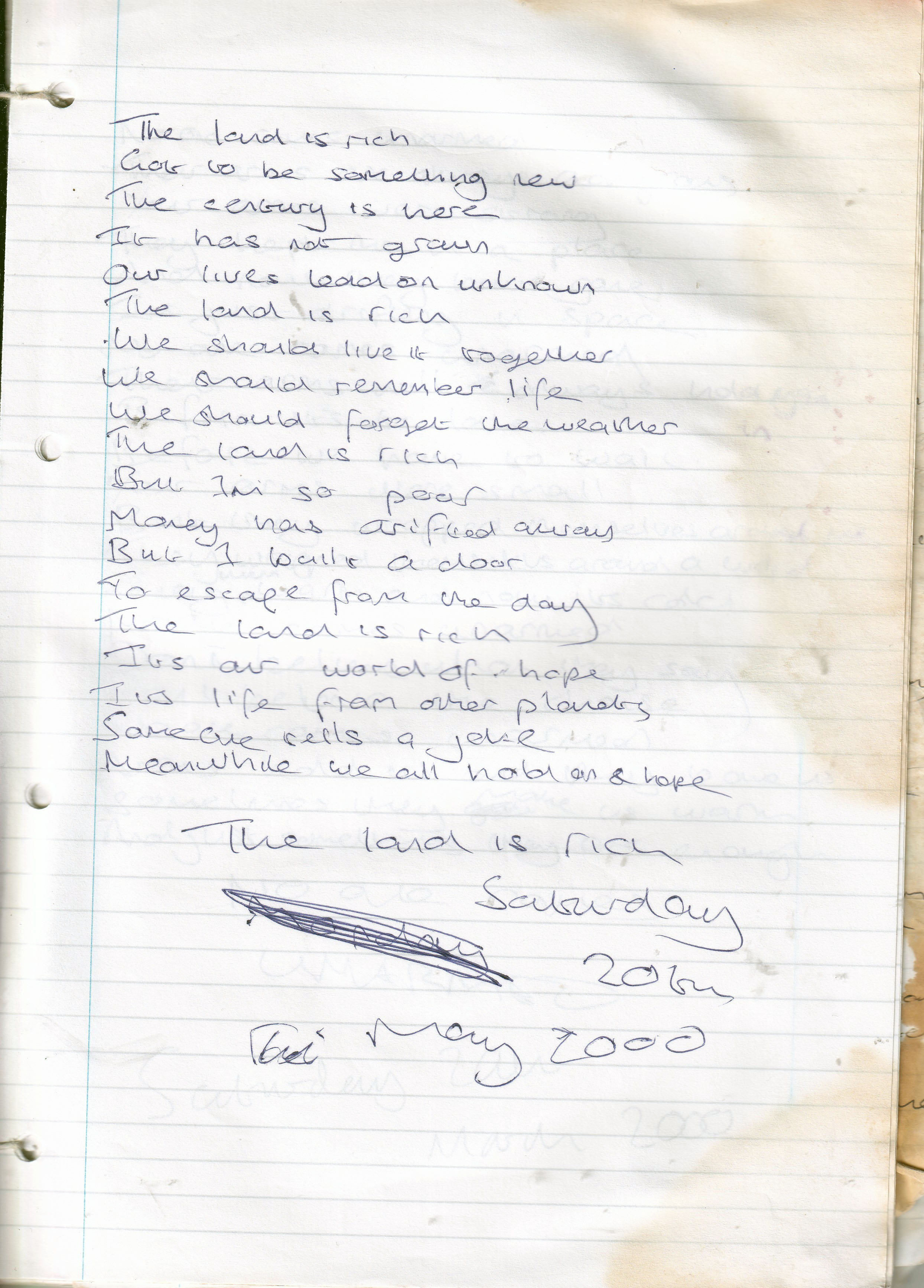 The Land is Rich – Written Saturday 20th May 2000 (Aged 25)
