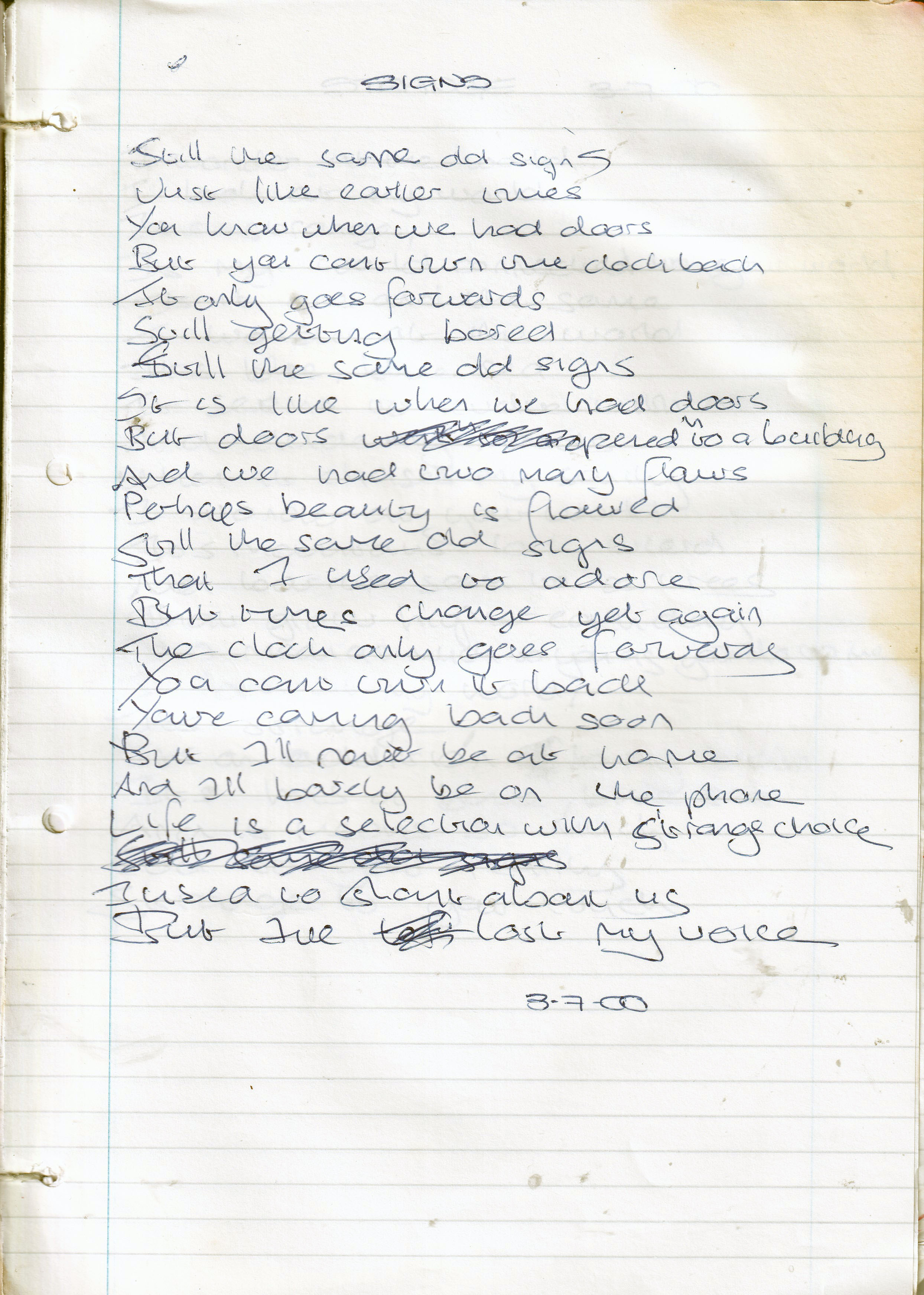 Signs – Written Monday 3rd July 2000 (Aged 25)