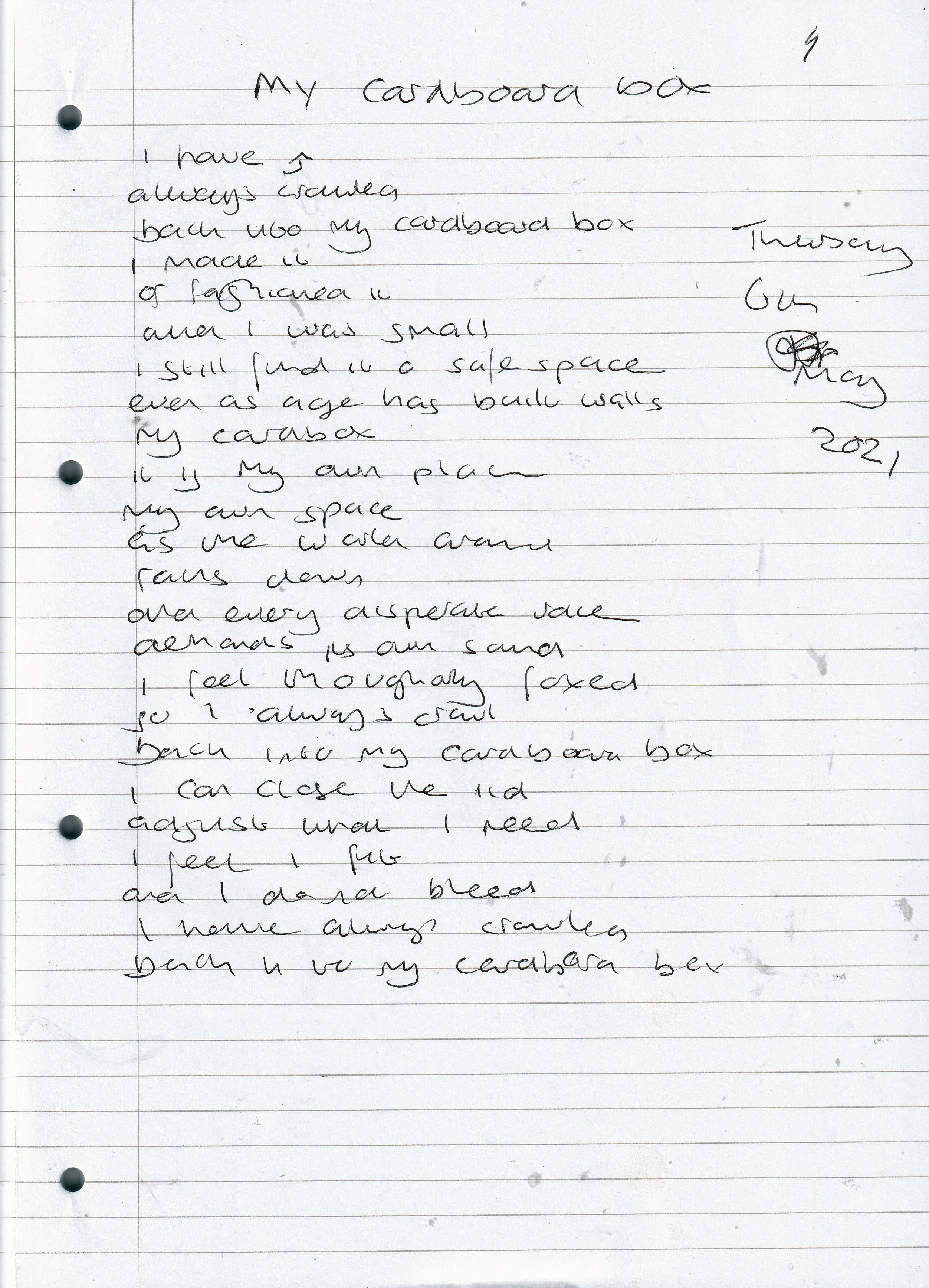 My Cardboard Box – Written Thursday 6th May 2021 (Aged 46)