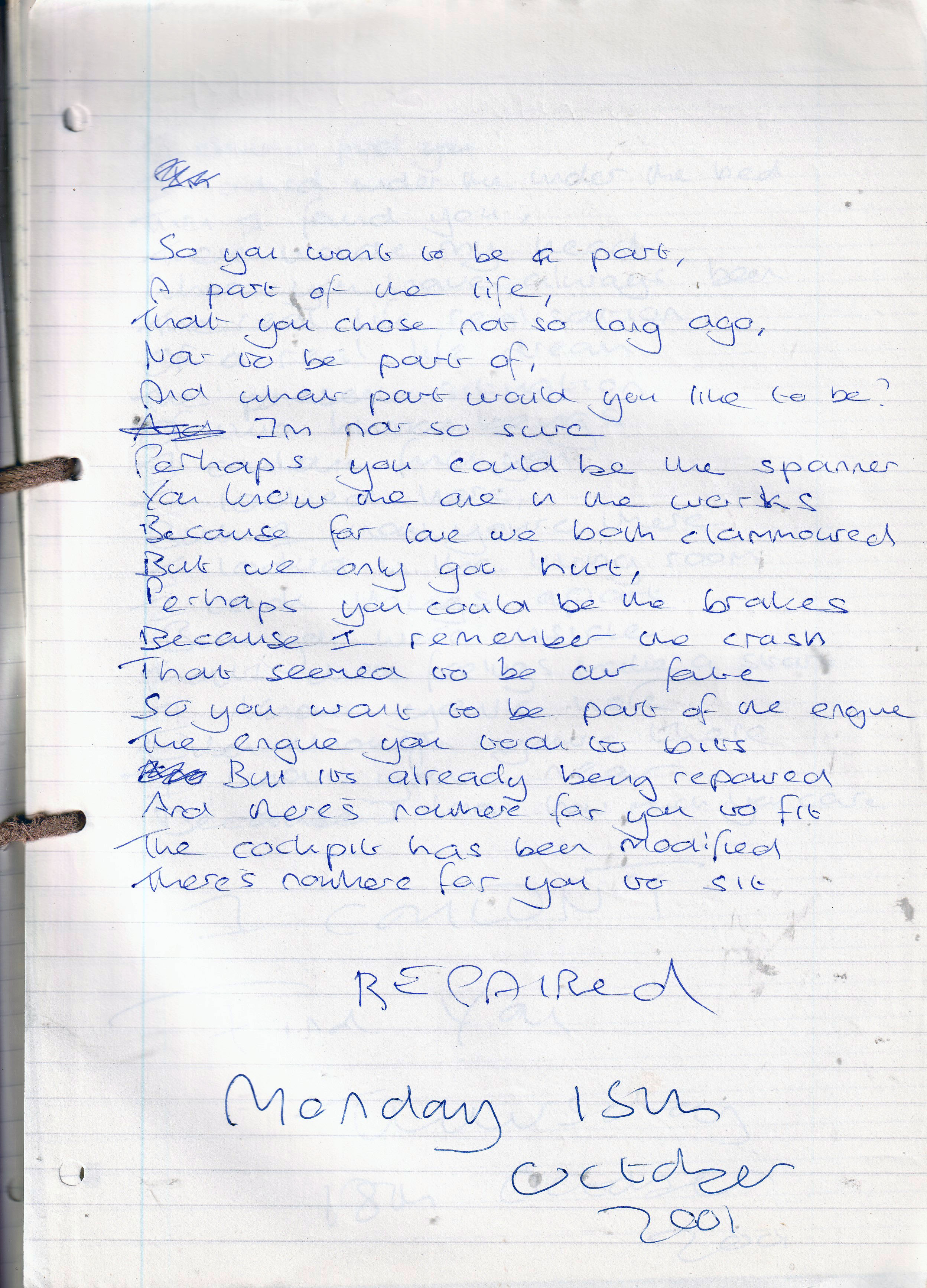 Repaired – Written Monday 15th October 2001 (Aged 26)