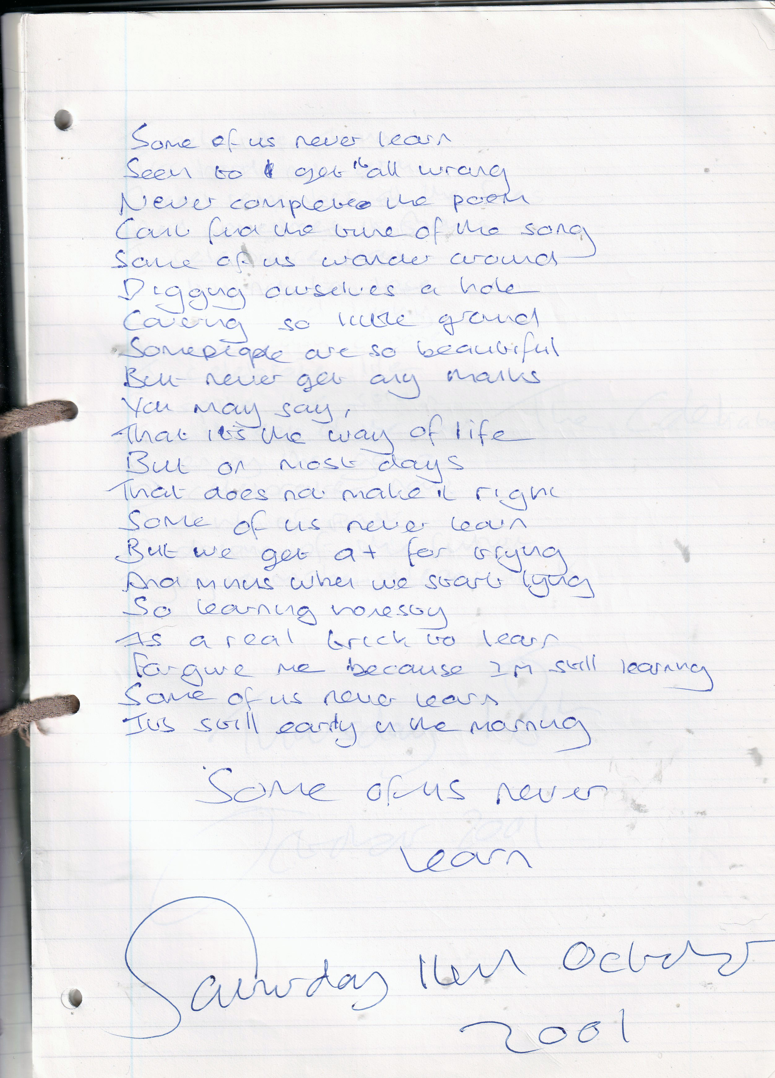 Some of Us Never Learn – Written Saturday 13th October 2001 (Aged 26)