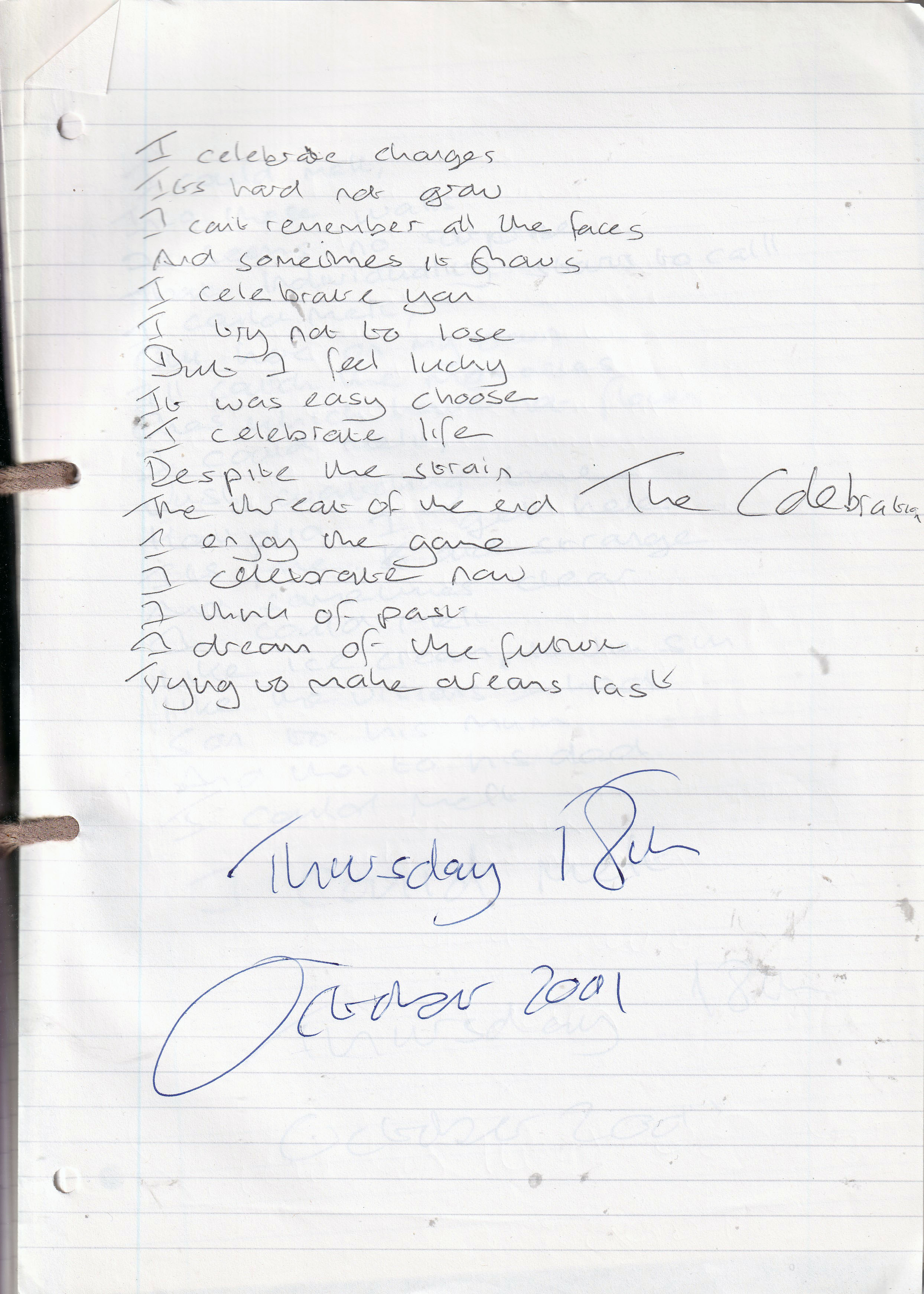 The Celebration – Written Thursday 18th October 2001 (Aged 26)