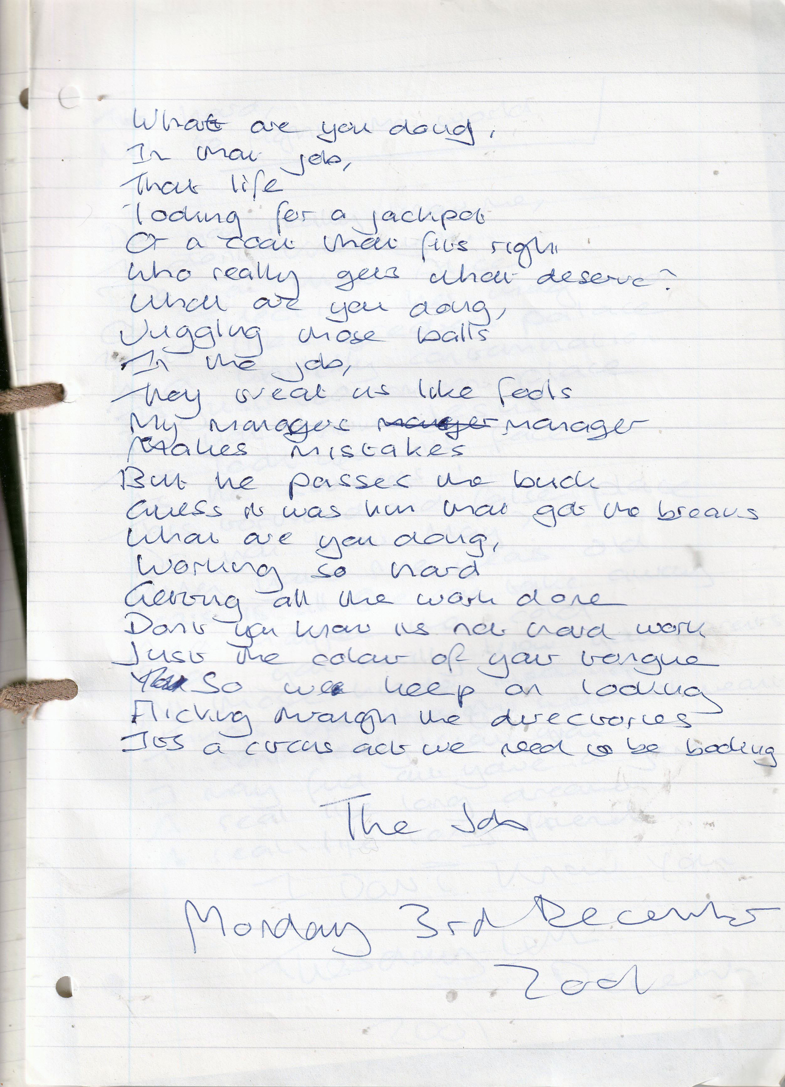 The Job – Written Monday 3rd December 2001 (Aged 26)