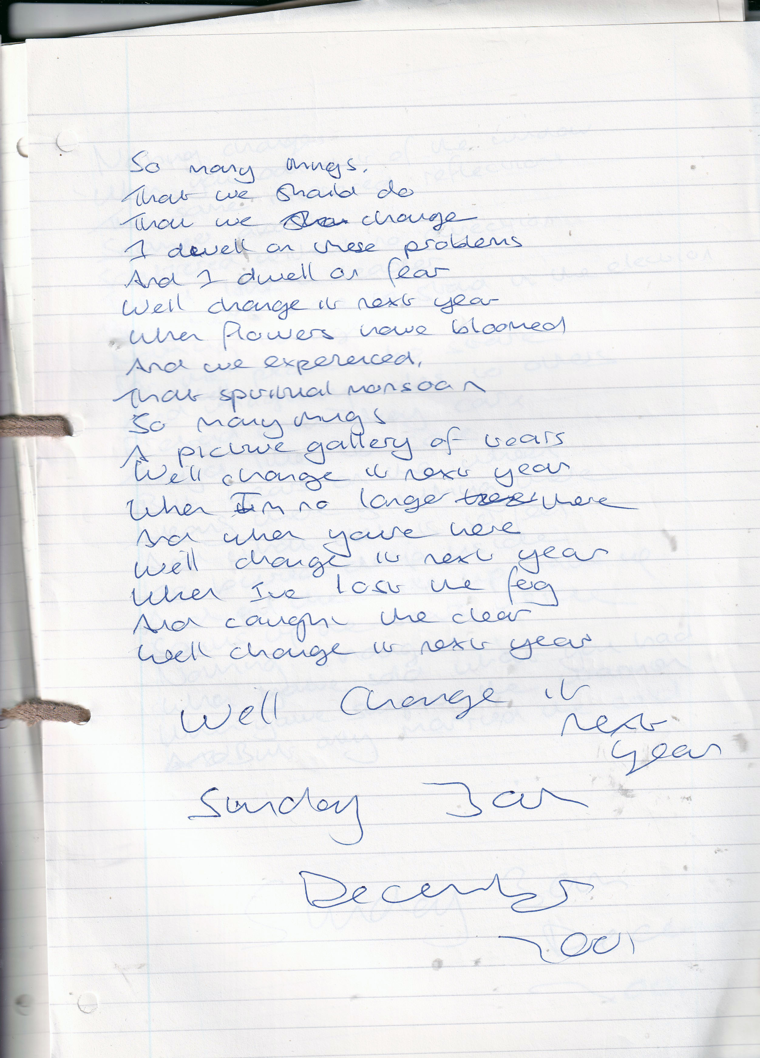 We Will Change It Next Year – Written Sunday 30th December 2001 (aged 26)