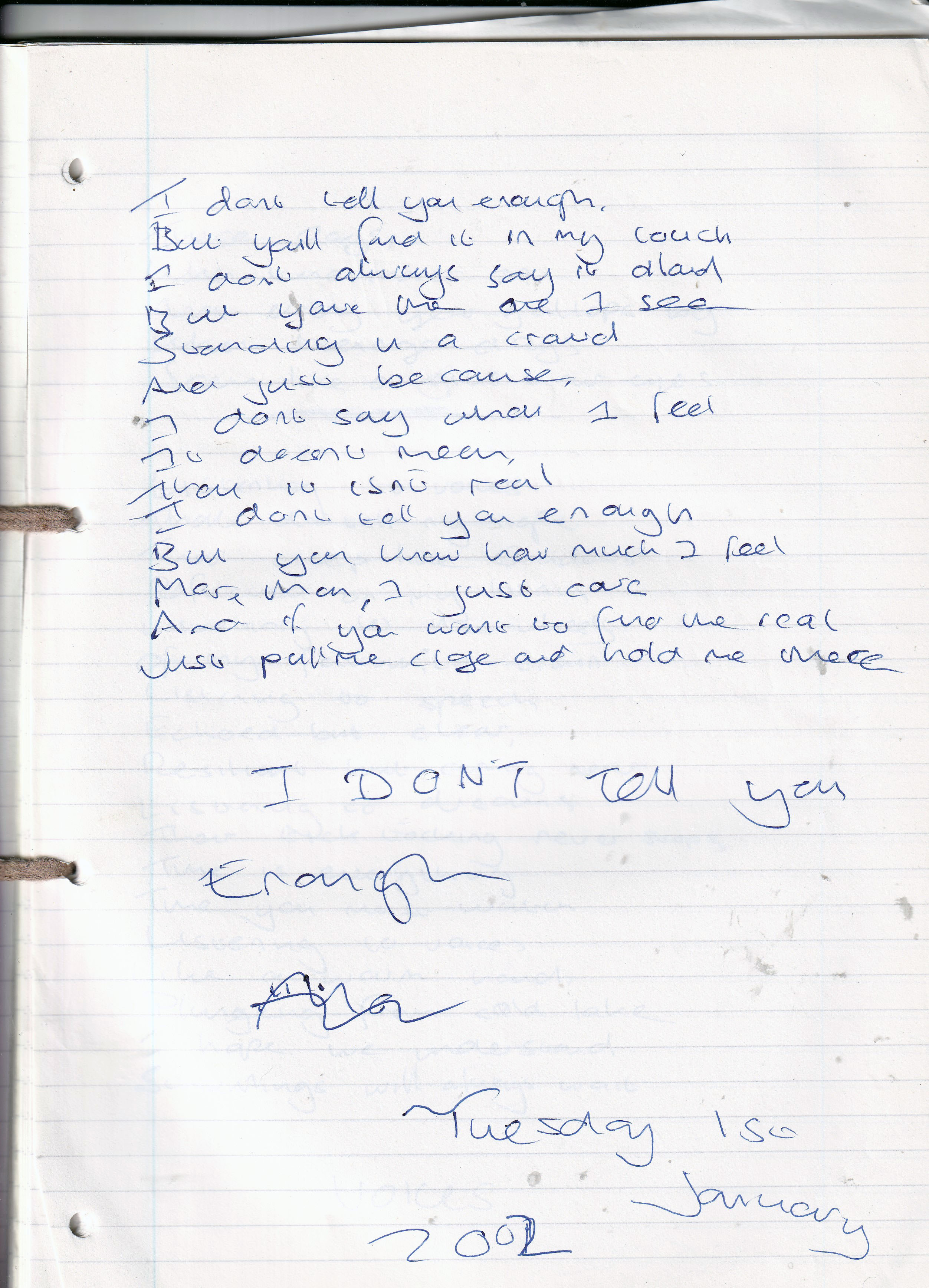 I Don’t Tell You Enough – Written Tuesday 1st January 2002 (Aged 26)