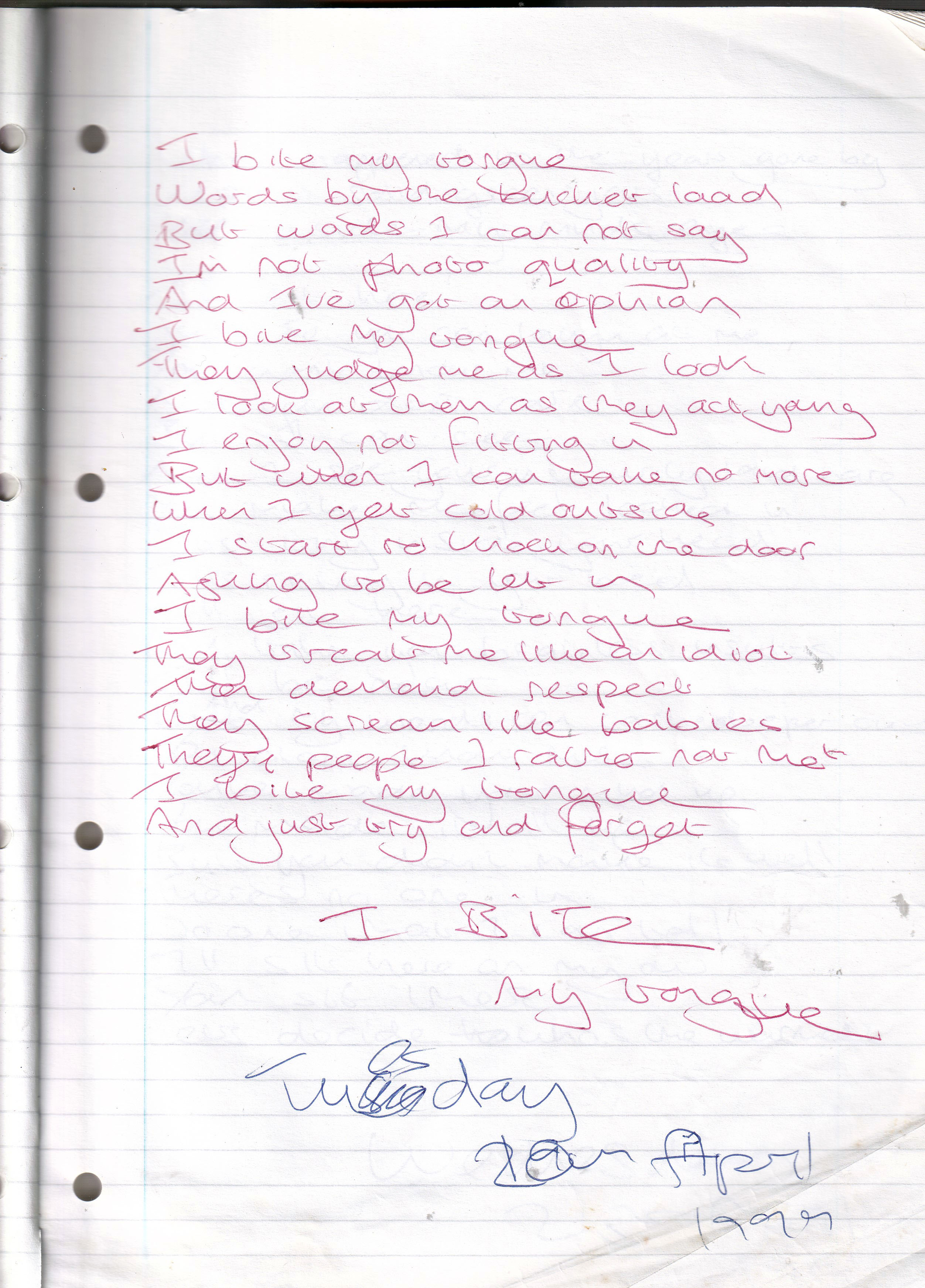 I Bite My Tongue – Written Tuesday 20th April 1999 (Aged 24)