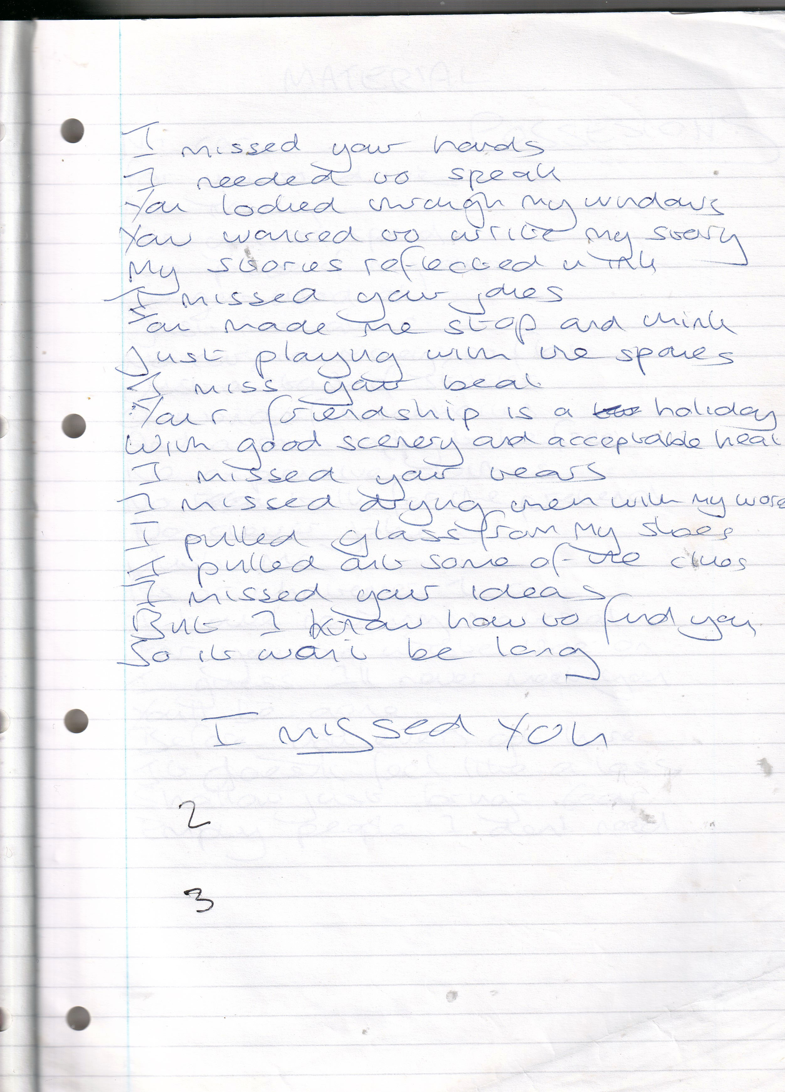 I Missed Your Hands – Written April 1999 (Aged 24)