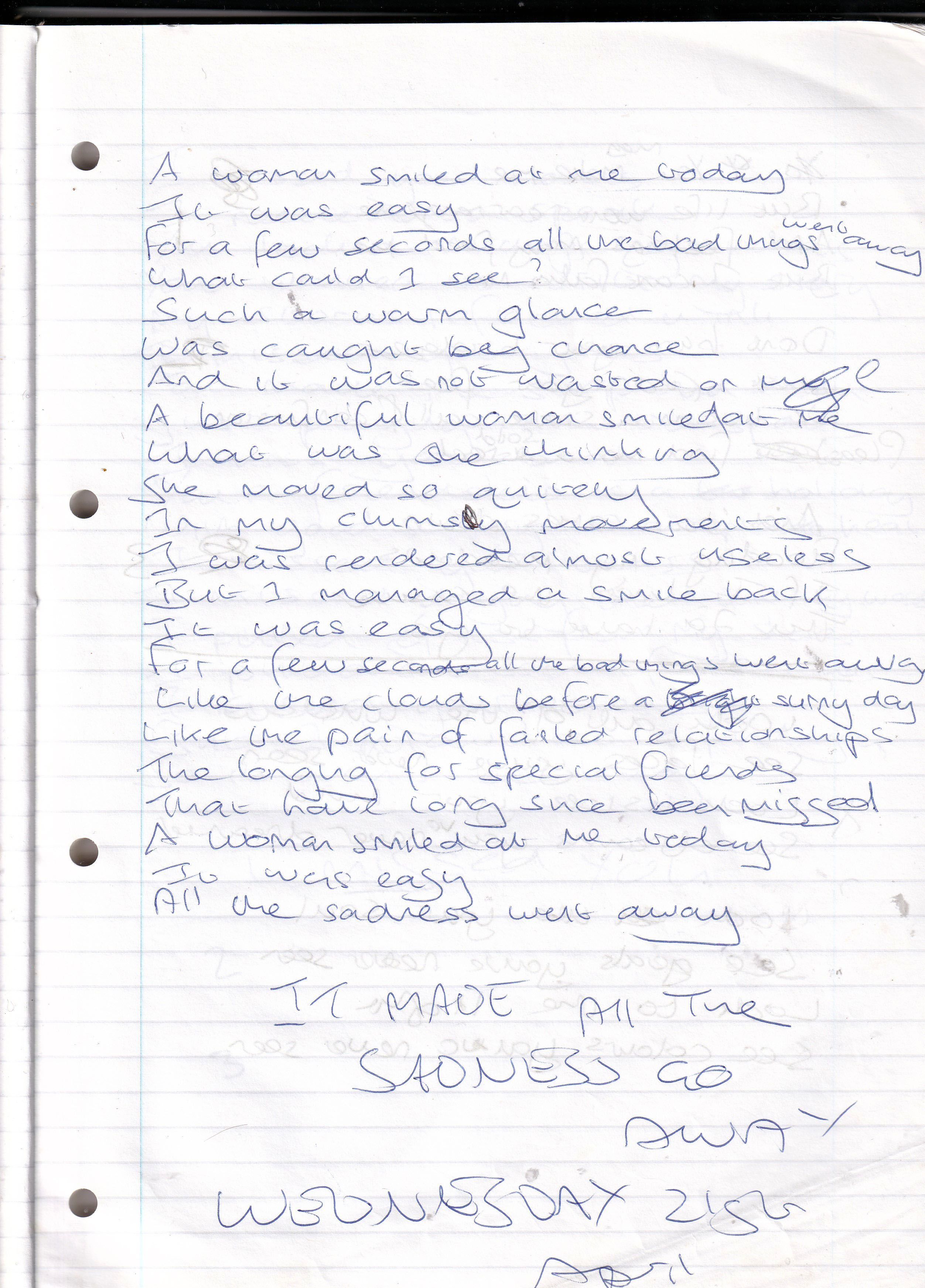 It Made all the Sadness Go Away – Written Wednesday 21st April 1999 (Aged 24)