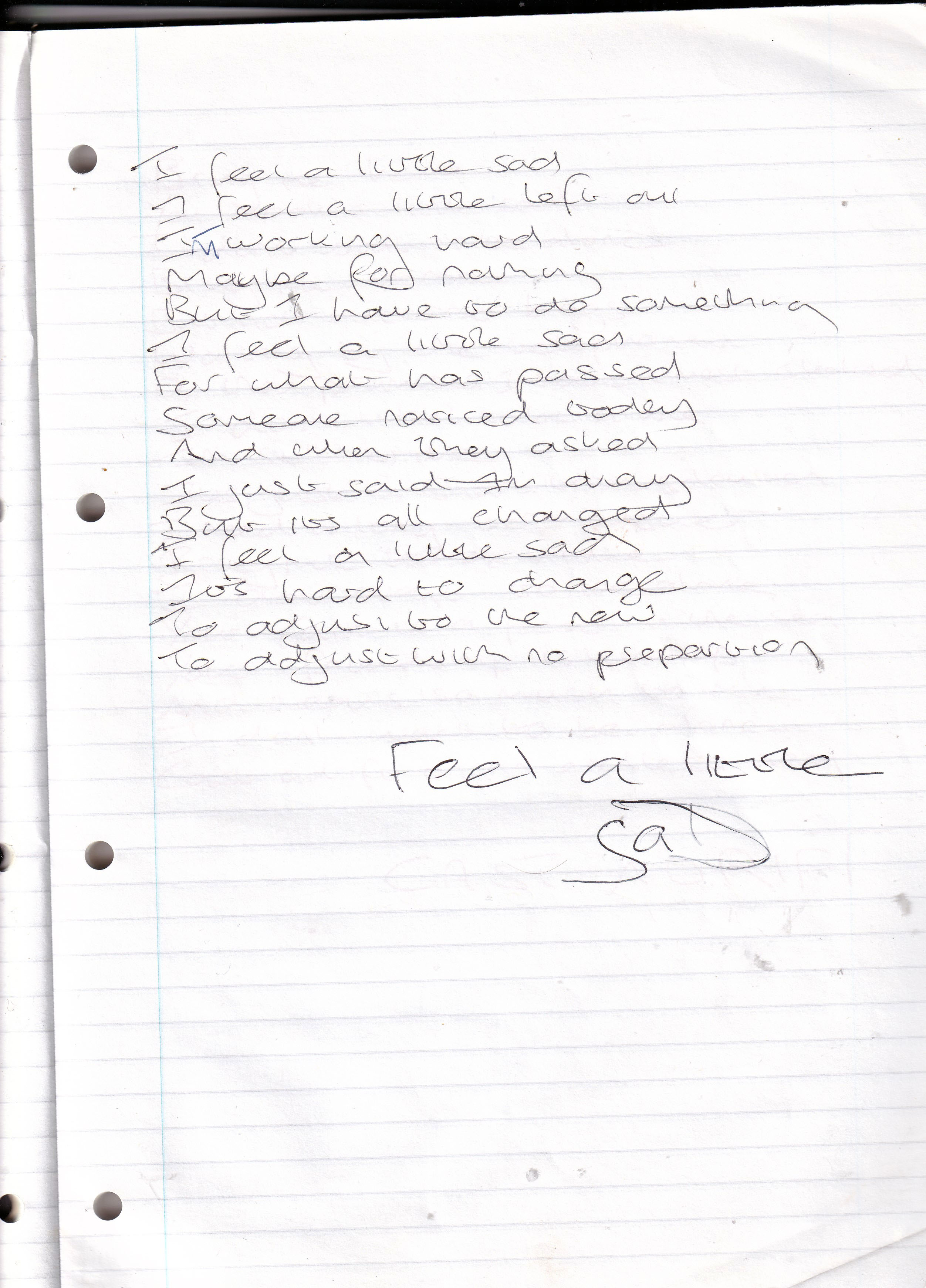 Feel a Little Sad – Written April 1999 (Aged 24)