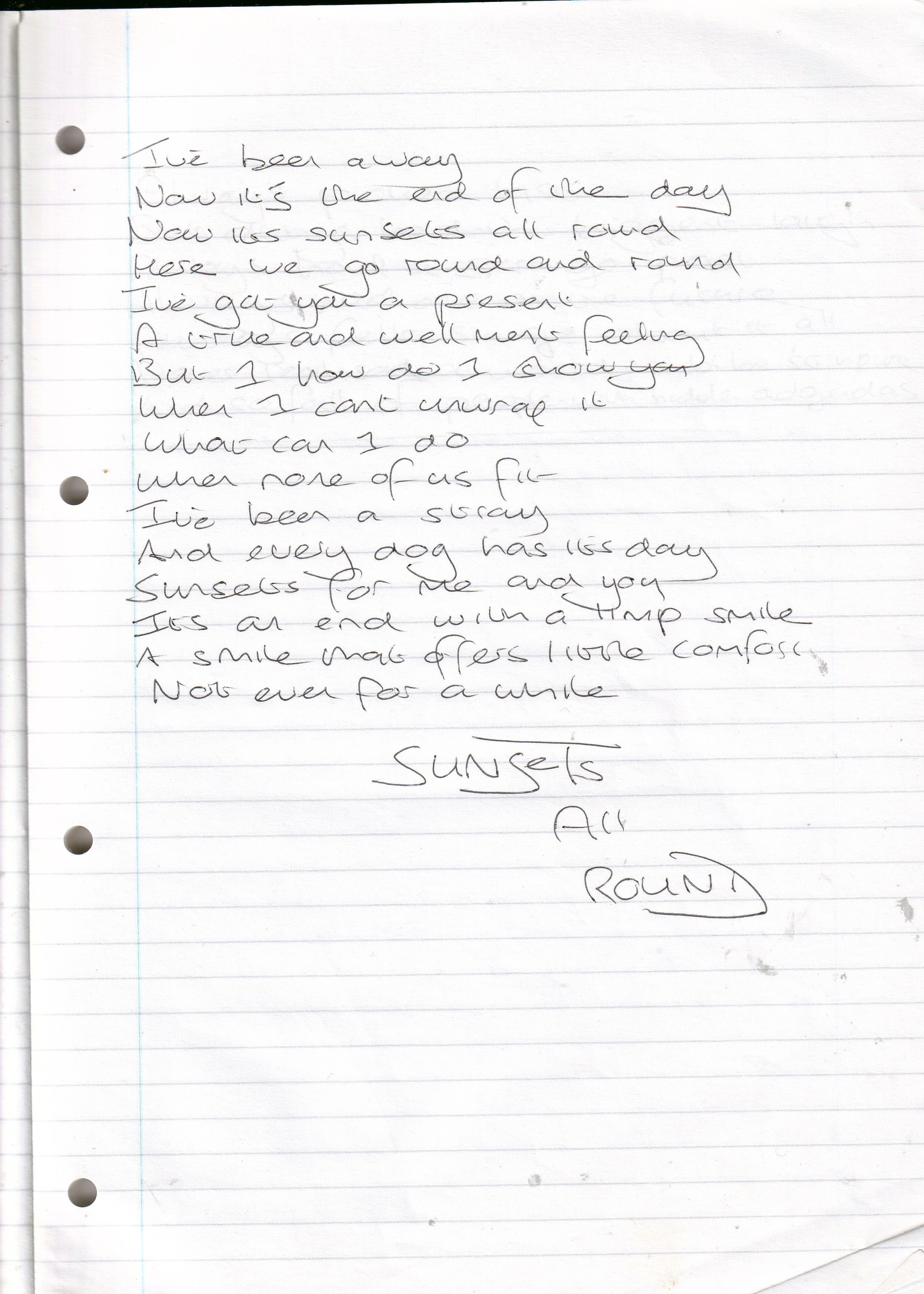 Sunsets All Round – Written April 1999 (Aged 24)