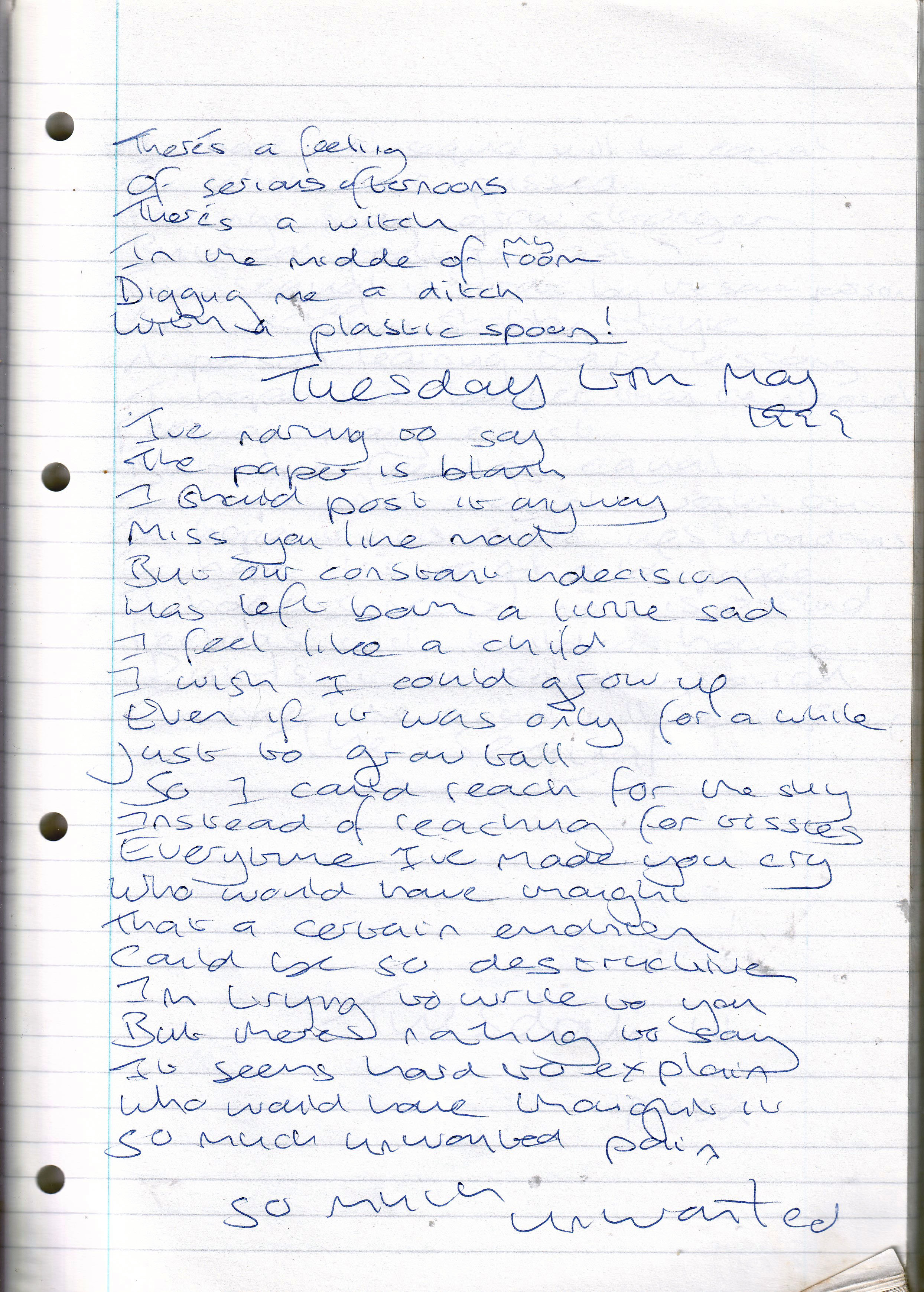 So Much Unwanted – Written Tuesday 4th May 1999 (Aged 24)