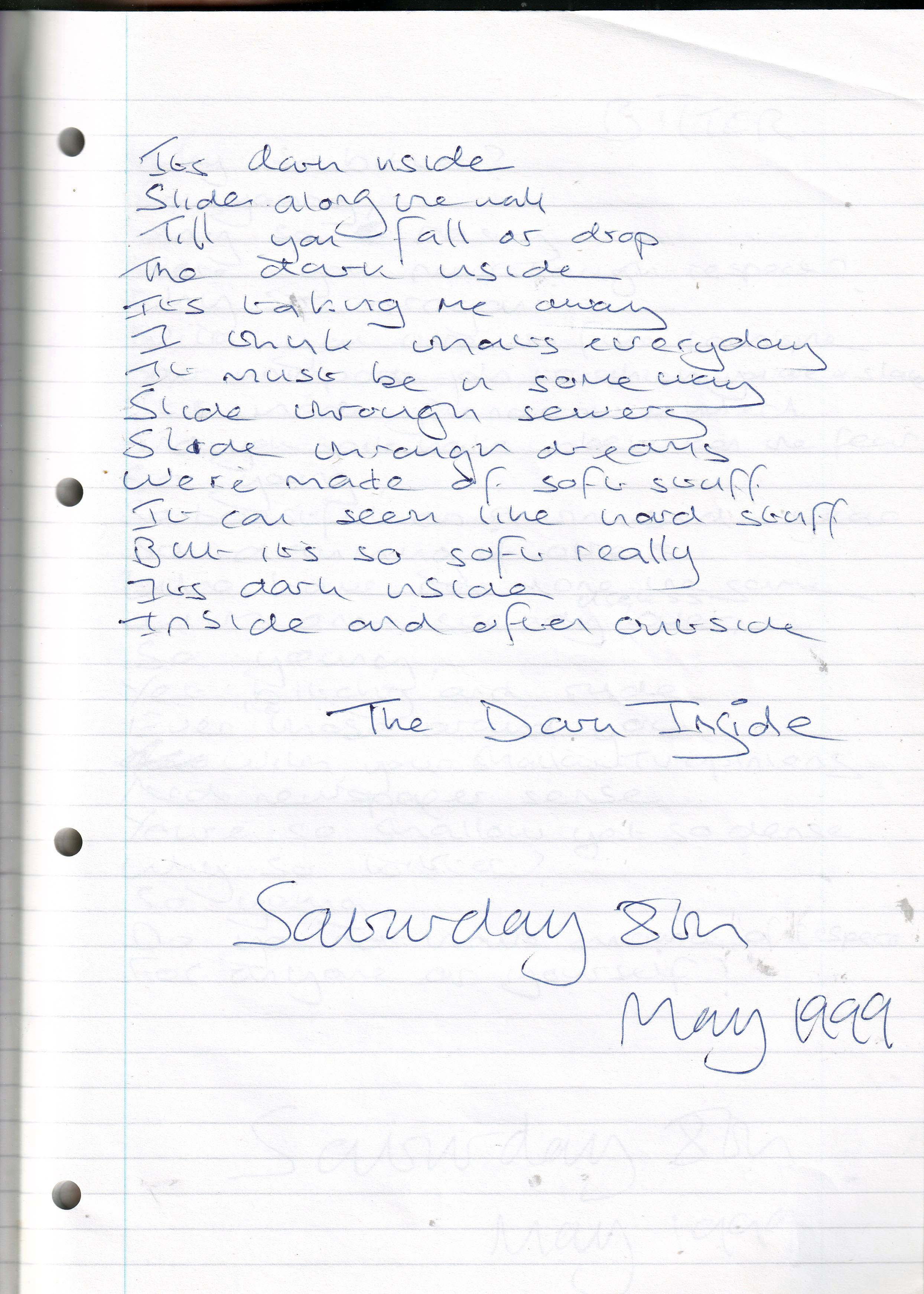 The Dark Inside – Written Saturday 8th May 1999 (Aged 24)