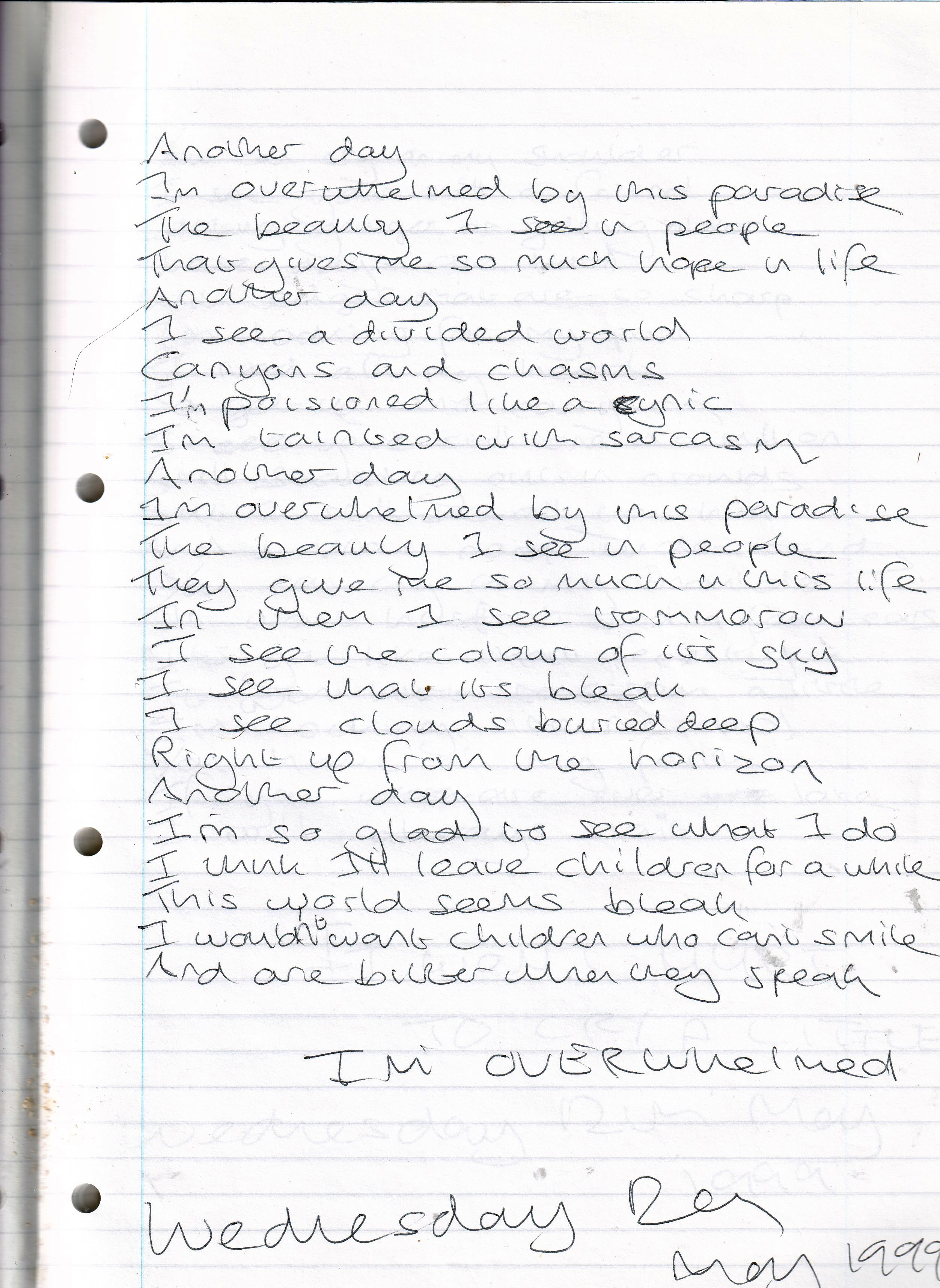 I Am Overwhelmed – Written Wednesday 12th May 1999 (Aged 24)