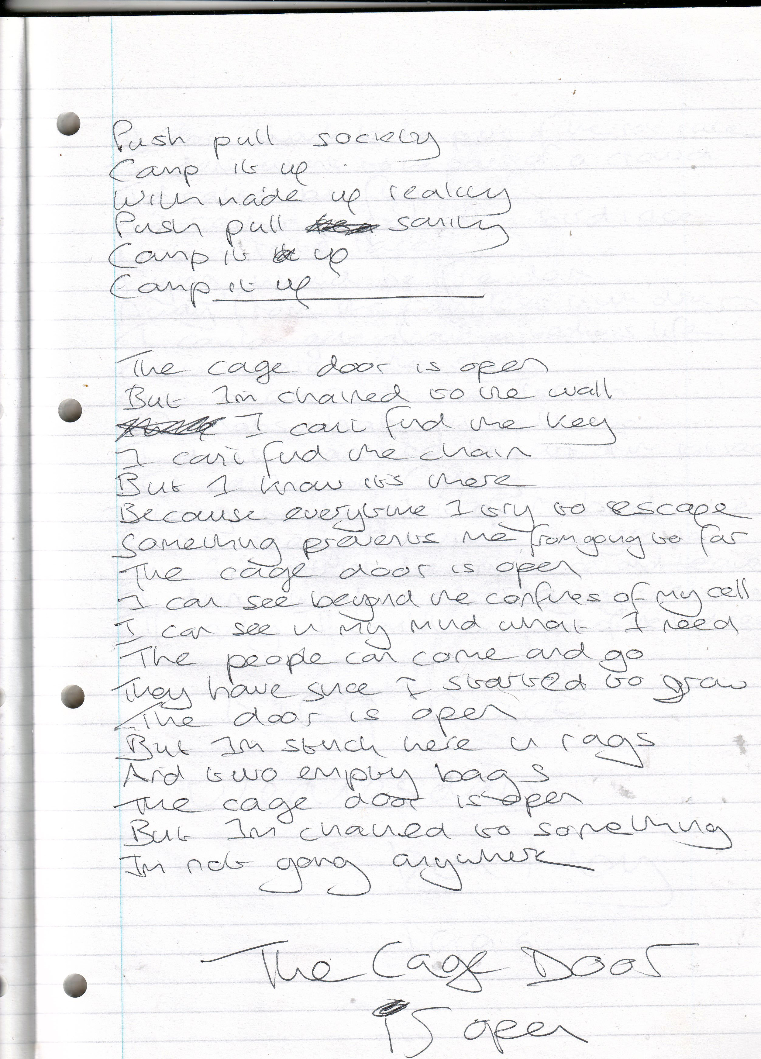 The Cage Door is Open – Written May 1999 (Aged 24)